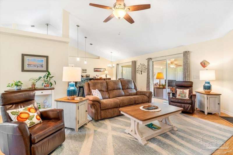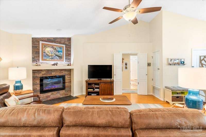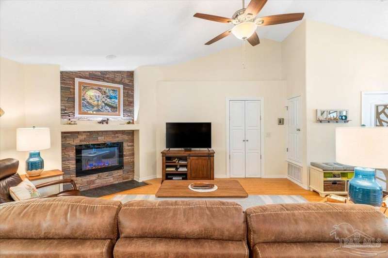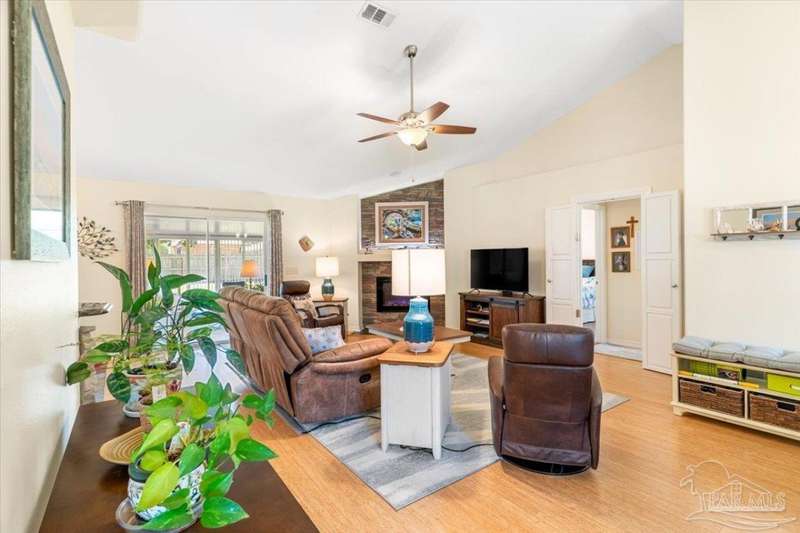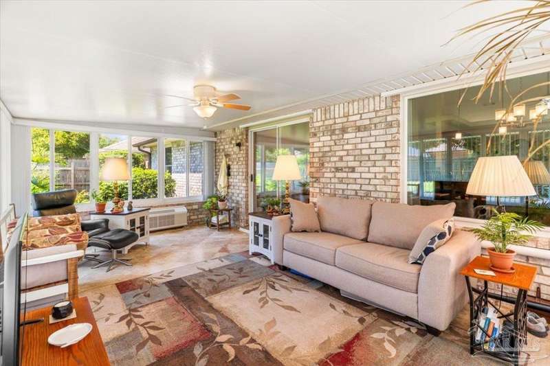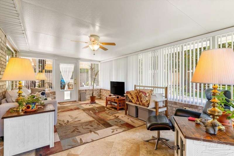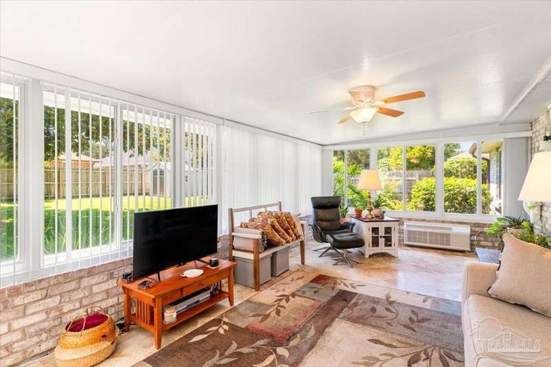This beautifully maintained 3-bedroom, 2-bath all-brick home offers exceptional curb appeal and a manicured backyard, making it move-in ready inside and out. The bright, open floor plan features fresh neutral paint, newly installed upgrades, including ceiling fans, modern lighting, and carpet in the two guest bedrooms. The spacious living area is highlighted by an electric fireplace with stonework, creating a warm and inviting focal point. The kitchen includes appliances less than four years old, a new backsplash, and updated faucets. A fully enclosed, climate controlled Florida room provides year-round enjoyment and adds flexible living space. Peace of mind comes with numerous key updates: new roof (2020), HVAC system (2020), water heater (2021) windows (2025) and tons more!