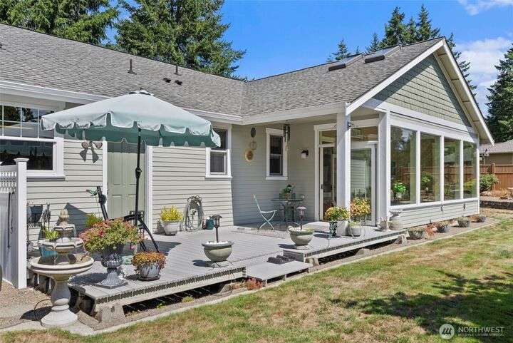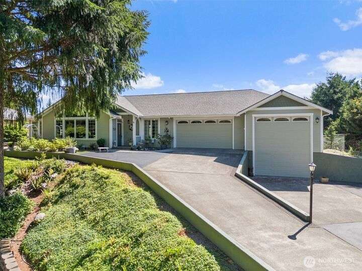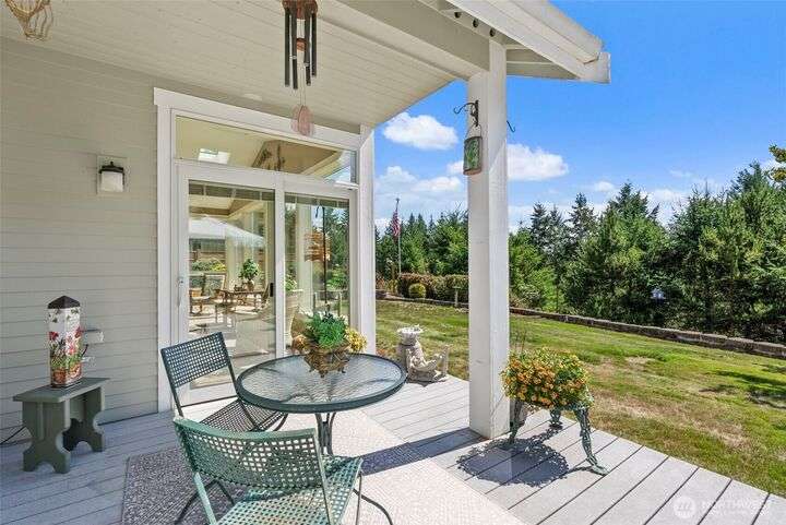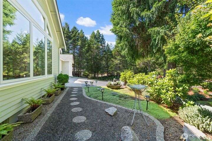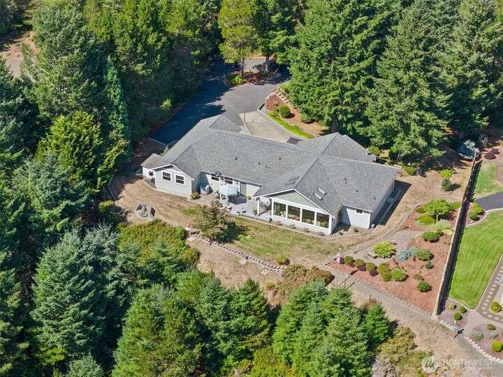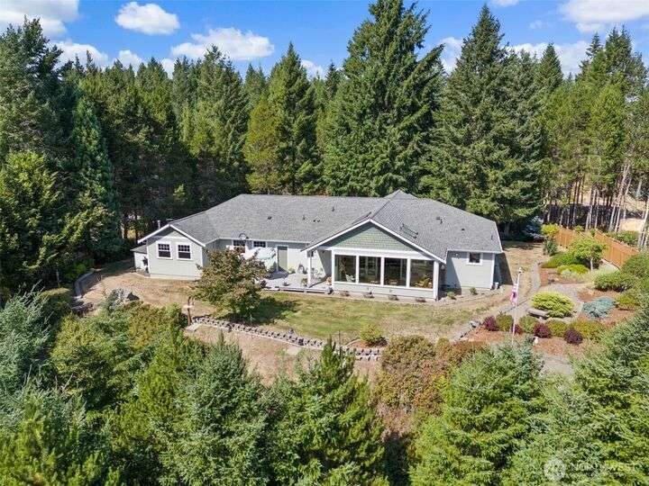 Pride of ownership is apparent in every aspect of this beautiful custom built single-story on 1.25 acres. Immaculate and move-in ready this home features top quality construction and materials. Enter into a large vaulted great room open to the chef's kitchen, dining space and south facing sunroom. The combination creates a friendly well-lit interior that is sure to please. Features include high end cabinetry, solid surface counters, SS appliances, heat pump and custom built-ins. En suite primary with a walk-in closet, soaking tub and separate shower. Enjoy the heated sunroom with year' round natural light. Attached double garage plus 41x18 garage to accommodate full size RV. Gorgeous landscaped setting with easy access to 101 and Shelton.