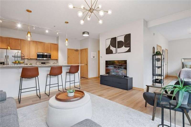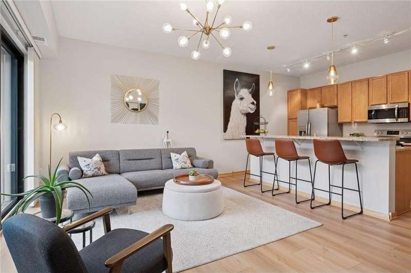 Your sun filled happy place awaits!!!! Welcome to 4525 Park Commons Dr #202, step inside and fall in love with the spacious open layout, clever floor plan, sleek modern finishes, and amazing balcony. This second-floor gem is for anyone who is looking for comfort with a splash of style! Enjoy coffee on the balcony, whip something up in the sleek kitchen with its granite counters and stainless-steel appliances or kick back in the spacious living room after a long day. This one checks all the boxes: in- unit laundry, underground parking, two fitness facilities, beautiful outdoor pool, party room & club room. The location cannot be beat- moments from Wolf Park, trails, coffee shops, Trader Joe’s, and the lakes. Pack your things and don’t forget your furry family members are welcome too!