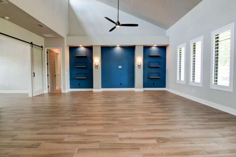 861 SW 120th Drive - Stunning Contemporary 4BR/4BA Home with Bonus Room – Designed with Every Detail in Mind This 3,156 sq. ft. newly constructed residence offers a bright, open-concept layout built on a reinforced post-tension foundation for lasting durability. Thoughtful upgrades include plantation shutters, 8’ interior doors, and expansive windows that flood the home with natural light. Wood-look porcelain tile extends throughout the main living areas and study, complemented by custom designer lighting. The gourmet kitchen showcases sleek European-inspired cabinetry, quartz countertops with a dramatic waterfall island, farmhouse sink, stylish tile backsplash, and premium stainless steel appliances, including a gas cooktop with vented hood, built-in oven/microwave combo, and dishwasher. Striking pendant lights highlight the spacious center island—perfect for gathering and entertaining. The sunlit family room features a soaring vaulted ceiling and oversized sliding glass doors that open to a generous covered lanai, overlooking a beautifully landscaped, fully fenced, and irrigated backyard. The owner’s suite includes dual walk-in closets, a spa-inspired bath with quartz dual vanities, and a custom-tiled walk-in shower. Each of the three guest bedrooms offers its own walk-in closet and en suite bath. Energy-efficient features include Icynene spray foam insulation, low-E insulated vinyl windows, and a tankless water heater. Nestled in the sought-after Glorias Way community, this home is ideally located near Tioga Town Center and just minutes from Celebration Pointe’s shopping, dining, and entertainment.
