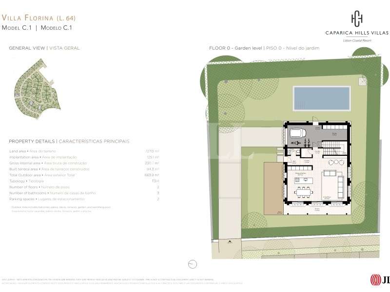 Moradia T4 nova com 231 m2 de área bruta de construção, jardim e piscina privativos, no Caparica Hills Villas, na Costa da Caparica. As unidades do Caparica Hills Villas oferecem garagem privativa, elevador, amplas zonas de lazer e espaços de arrumação. A construção incorpora elementos sustentáveis como painéis de madeira, coberturas ajardinadas e vegetação local, garantindo eficiência energética e conforto durante todo o ano. O empreendimento integra-se num resort completo que inclui o Hotel IHG Crowne Plaza Caparica Lisbon, instalações de bem-estar com spa, fitness club e estúdio de yoga, um campo de golfe de 9 buracos e uma zona comercial com 20 lojas boutique. Nos planos futuros estão previstos um centro desportivo e uma escola. A localização do Caparica Hills Villas combina tranquilidade e conveniência: a 5 minutos do mar, a 15 km do centro de Lisboa (15 minutos de carro) e próximo do aeroporto principal. Para compras diárias, o supermercado encontra-se nas imediações. O Caparica Hills Villas representa uma proposta de valor equilibrada para quem procura um investimento imobiliário ou residência numa das zonas de maior potencial de valorização da Grande Lisboa, conjugando proximidade à capital com a qualidade de vida junto ao mar. Categoria Energética: A #ref:90866