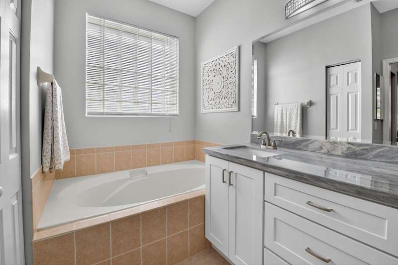 RARE UPDATED home in this price range! Major UPDATES include kitchen cabinets, quartz counter tops , wood-grain ceramic flooring, new vanities, frameless shower, garage storage, AC 2025 and Water Heater 2023. 2 walk-in closets, storm shutters. Vizcaya is pet friendly too. Enjoy the expanded, screened/covered patio while entertaining. Cable, internet, exterior painting (Oct 2025), roof maintenance, and landscaping are included in the low monthly HOA fees of $485. Roads paved in 2023. At the clubhouse, you'll find pickleball, tennis, heated pool, bocce ball, card rooms, fitness center and more. This is a 55+ gated community on Atlantic Ave close to places of worship, shopping, theater, nightlife, and easy access to the FL Turnpike and I95!