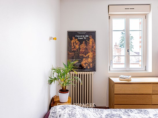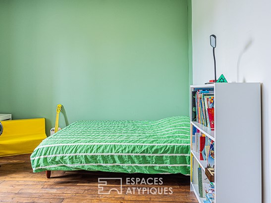 The period oak staircase leads to the floor dedicated to the sleeping area. With its star-shaped layout, the central landing serves four bedrooms. The solid parquet flooring present throughout this level reinforces the timeless charm that reigns in this house. The bathroom is a subtle blend of old and new lines. The upper level, now an attic, could accommodate multiple projects depending on needs.
