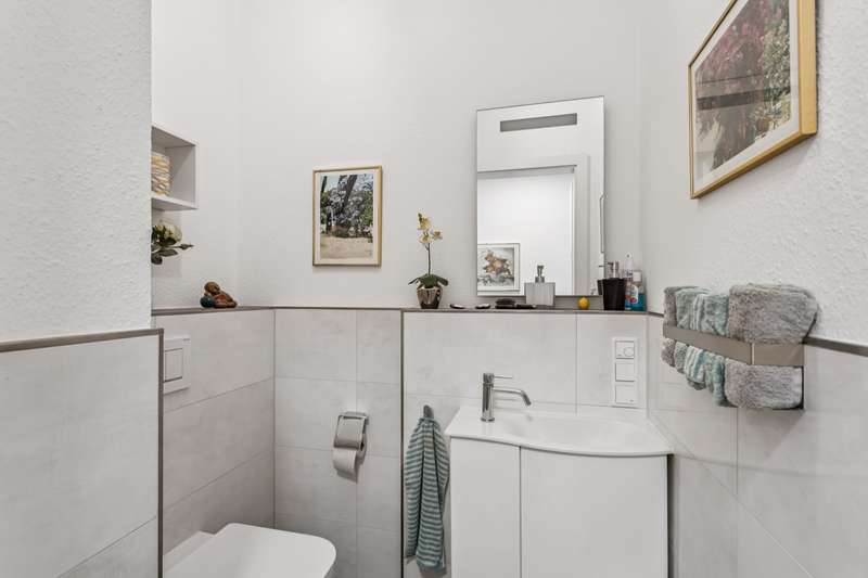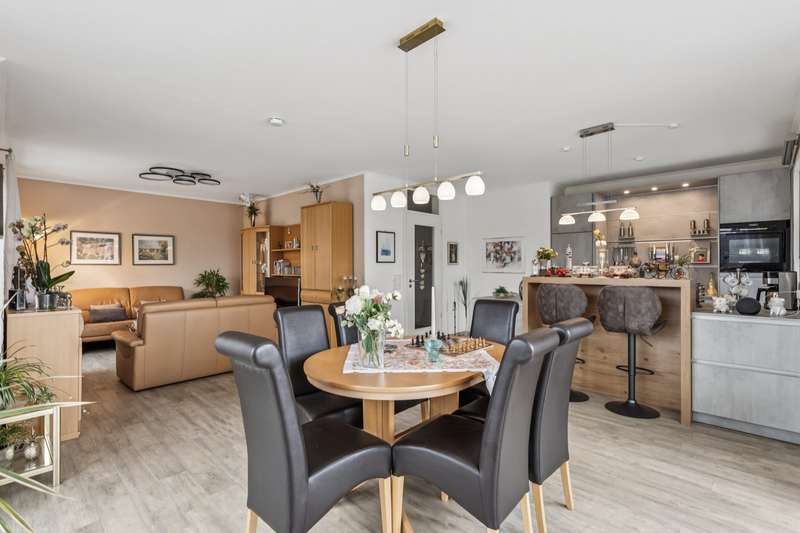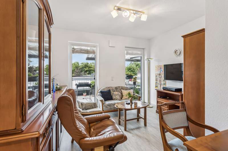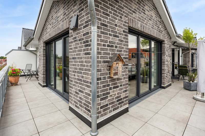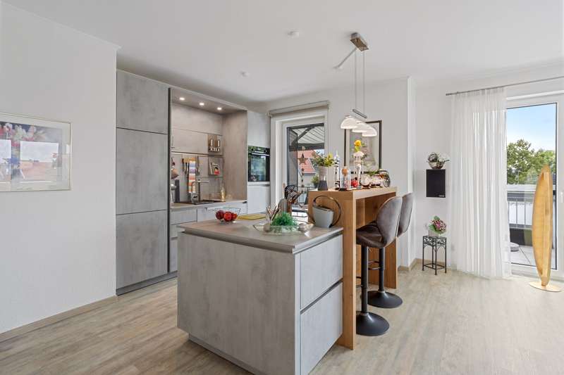 *** Attention: Please note that the apartment is being sold with a lifelong right of residence for the current owner and therefore cannot be used immediately. However, it offers attractive long-term prospects. The restriction of use is already included in the purchase price *** This as-new penthouse apartment is located on the third floor of a well-kept apartment building with a total of nine residential units. With around 142 m² of living space, four rooms and a roof terrace measuring approx. 56 m², the apartment impresses with its upscale furnishings and modern architecture that combines comfort and functionality. The central living/dining area with an open, high-quality equipped kitchen forms the heart of the apartment. The kitchen has a smart induction hob with integrated extractor fan, comfortable work surfaces and modern built-in furniture with high-quality appliances. From the living area, you have direct access to the spacious roof terrace, which is equipped with an electric awning and offers a wide range of options for outdoor use - ideal for relaxing, dining or receiving guests. A well-designed hallway connects the individual rooms and emphasizes the clear room layout. The space is complemented by a bedroom and two versatile rooms that can be used as a study, guest room or children's room as required. The stylish daylight bathroom impresses with a level-access shower area and high-quality sanitaryware. An innovative low-temperature underfloor heating system ensures a pleasant indoor climate, which is supplemented by an air conditioning system with heat recovery - for healthy living and high energy efficiency. The apartment is fitted with high-quality branded windows including triple glazing and electric plastic roller shutters, which offer excellent sound insulation and effective thermal insulation. An integrated video intercom system provides additional security and modern communication. Fast internet access is guaranteed thanks to a fiber optic connection - ideal for working from home and streaming. Practical storage space is provided by the utility room, which can accommodate a washing machine and dryer. There is also a separate cellar room. An underground parking space and an outdoor parking space ensure convenience in everyday life - this means that shopping can be brought into the house dry even when it rains. The building is centrally heated and meets current energy requirements. The well-kept residential complex impresses with its pleasant neighborhood and attractive location with good infrastructure. As an alternative to future owner-occupation, the apartment is an interesting option for investors who value solid building fabric, high-quality fittings and good development prospects. We would be happy to provide you with further information or advise you individually on your project. We look forward to hearing from you.