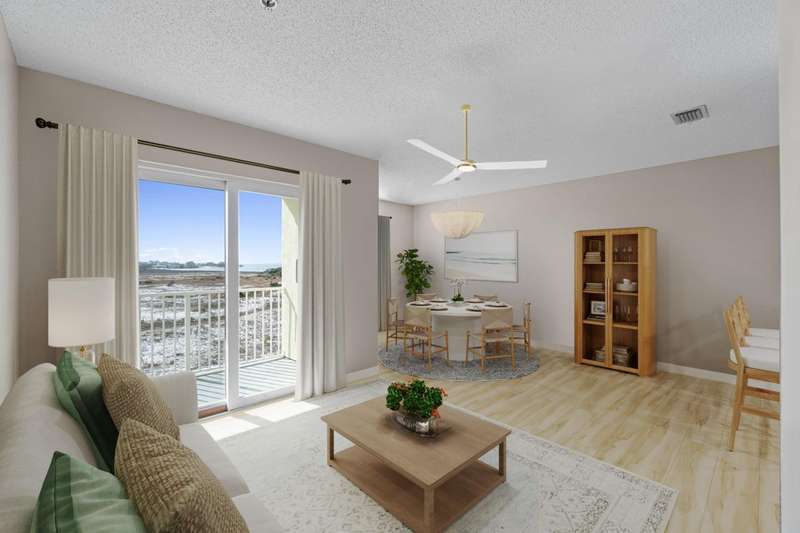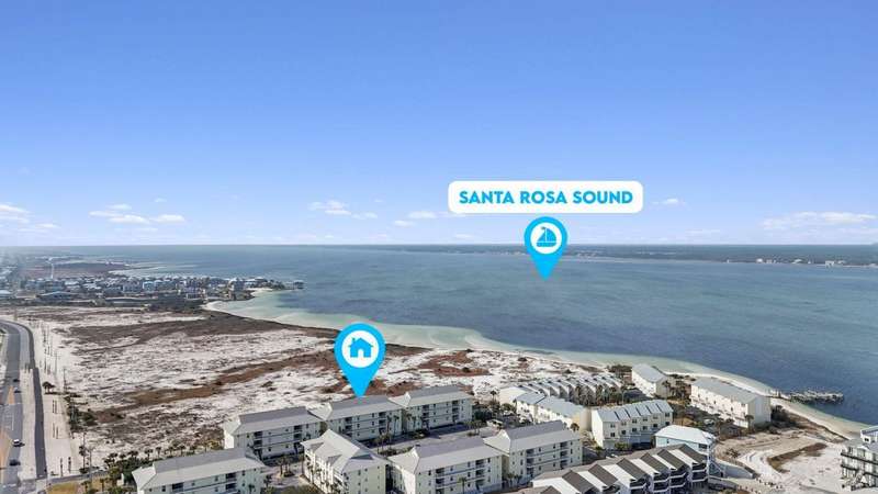 Live the Ultimate Beach Lifestyle! Where the best of Navarre Beach is right at your doorstep! This 1-bed, 2-bath condo with built-in hallway bunks offers unobstructed second-floor views of the Santa Rosa Sound and Gulf of Mexico, making every sunrise and sunset an experience to remember. Location is everything! With beach access just across the street, your toes will be in the sugar-white sand in minutes. Take a dip in the community pool, or explore the vibrant beach scene. Walk to local restaurants, the famous Navarre Beach Pier, and scenic walking and biking trails. There's always an ocean breeze, and the laid-back island lifestyle is second to none. Inside, the condo has fresh paint throughout, New Water Heater & HVAC offering a clean slate for you to make it your own! Short-term rentals are allowed, making this an excellent investment, a vacation retreat, or your own personal escape to paradise. Whether you're seeking adventure, relaxation, or the perfect coastal getaway, this is your chance to own a piece of Florida's Most Relaxing Place. Don't waitschedule your showing today! Included with the sale is the Design Services! Which includes design boards that are click to purchase. Each board includes a curated selection of products from reputable retailers making it easy to recreate the staged looks you see here for your new home/investment! Contact the agent today for further details/information on this unique benefit.