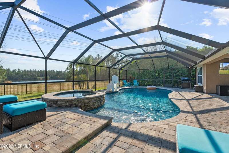 The view! Float in the pool or relax in the spa of this 5 BR POOL home and see nothing but water and nature views! People who've viewed the home gave positive feedback on the outdoor living area, floor plan, curb appeal, and proximity to amenities, schools and highways. Sellers enjoyed fishing in the pond behind the home. 1st floor has a large open living area with family rm, dining area, kitchen w/island & breakfast area and 4 BRs..One of the secondary bedrooms is very large - the plans cal1ed for 2 separate bedrooms & the owners opted to omit the wall between them. You can use it as a large BR with a sitting area or install a wall to create a 6th BR. This wing of the house would also be great space for extended family members to live or long-term visitors to stay. 2nd floor has the the 5th BR or Rec Room, full bath & lg closet.. Other notable features include the 2.5 car garage, lg smart HVAC, Gemstone lighting. extra insulation, pro landscaping, NEW water heater & generator wiring