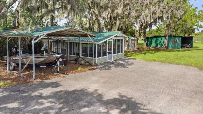 Cozy 2-bedroom, 2-bath lakefront cabin on a beautiful 1.46-acre lot in Davenport. This charming property offers endless potential perfect for buyers looking to add their personal touch or investors seeking a great opportunity. The cabin needs some TLC and is being sold as-is, making it ideal for renovation or a peaceful weekend retreat. Enjoy over 530 feet of shoreline with a private dock, gated highway access, no HOA fees, and great fishing with easy boat launching. Take in scenic golf course views and enjoy convenient access to I-4 and Hwy 27. Relax on the screened-in porch with your morning coffee, listening to the birds and feeling the refreshing lake breeze. Experience the tranquility of a large, private lot while still being just minutes from shopping, dining, and major highways.