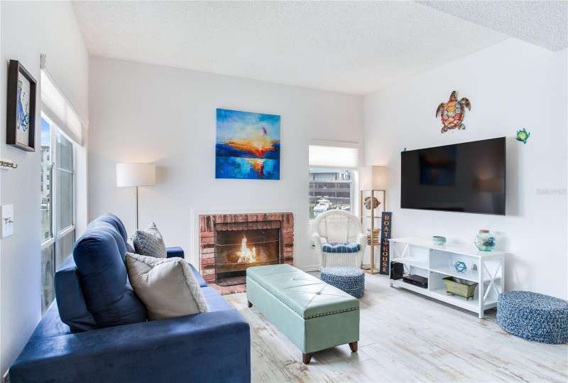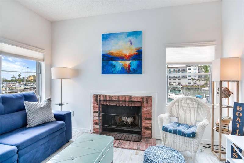 AFFORDABLE WATERFRONT, WATERVIEW CONDO WITH BOAT SLIP IN MADEIRA BEACH NEWLY UPDATED. Amazing 2-story waterfront 1 bedroom, 1 ½ bathroom condo in Madeira Beach Yacht Club. This second floor condo is offered turnkey and includes a large front porch (which can be screened in), a personal grill and deeded boat slip for a 40+ ft boat. The main living floor includes a charming living area with wood burning fireplace and marina views. The kitchen is bright and airy with a water view and pass-thru to the dining area. A half bath with laundry rounds off the features of the main floor. Upstairs is a very large master bedroom with vaulted ceiling, sitting area, en suite bathroom and water view. The master closet is huge and includes a second laundry hook-up. Some units have divided the master bedroom into 2 bedrooms. With short-term rental capabilities, private boat slip, waterfront porch to watch the dolphins play and an incredible location, this condo can be a great income generator or your perfect vacation destination. Madeira Beach Yacht Club is a gated community with pool, spa, fitness, billiards and marina, just across the street from Madeira Beach’s municipal area with tennis courts, fishing, basketball, library, park and playground. This beautiful condo is located in the best waterfront building in the community and is just a short walk to the grocery store, restaurants, night life, shopping and Madeira’s world-class beach.