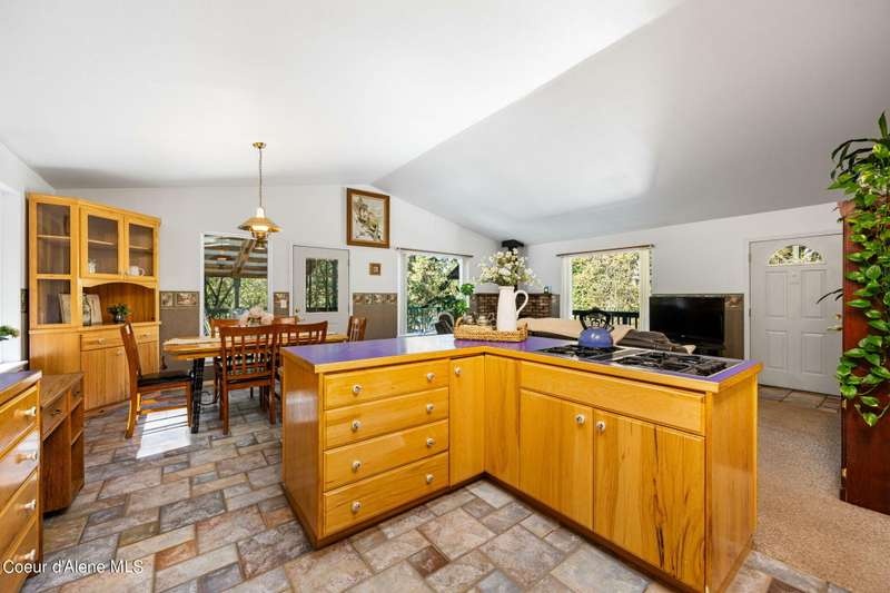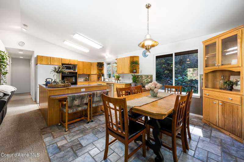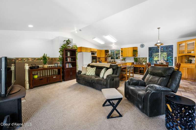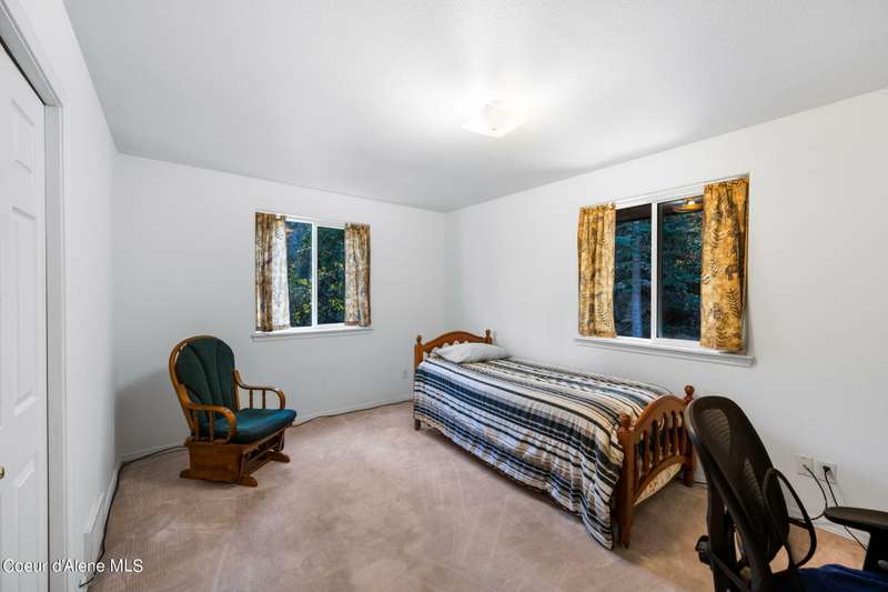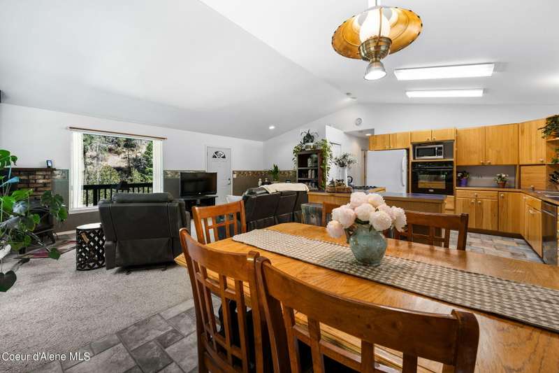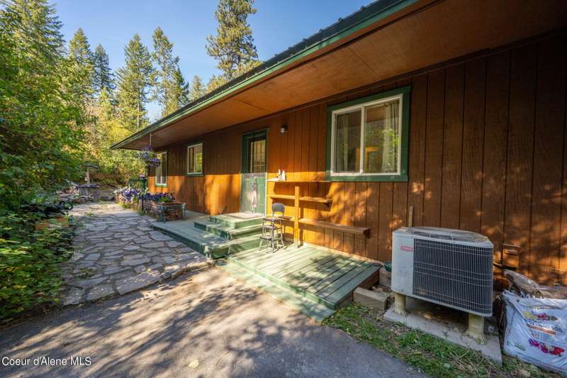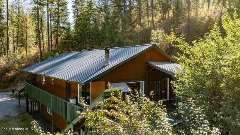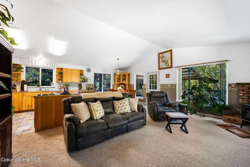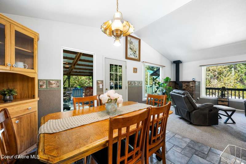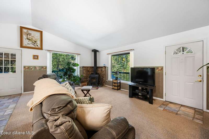 Private Country Living Just 10 Minutes from Downtown Post Falls! Discover this spacious 3-bedroom, 2-bathroom home spanning 2,113 sq. ft. nestled on over 5 wooded acres. The property boasts a freshly painted exterior and interior, offering a move-in ready experience. Step into the open-concept living area featuring vaulted ceilings, a large kitchen, and dining space, perfect for entertaining. A cozy wood-burning stove complements the heat pump, ensuring comfort throughout the seasons. Enjoy outdoor living with a partially covered deck, ideal for morning coffee or evening BBQs. The property is complete with fruit trees, flower beds, a fully fenced garden, RV parking, a carport, and a 20x40 shop for all your storage and project needs. The lower level includes a generous rec/bonus room and an oversized master suite, while the additional storage room provides plenty of space for food or other supplies. With no CCRs or HOA, you have the freedom to make this property your own.