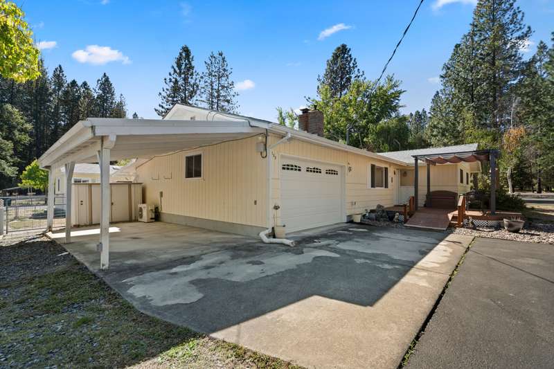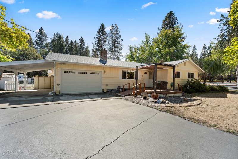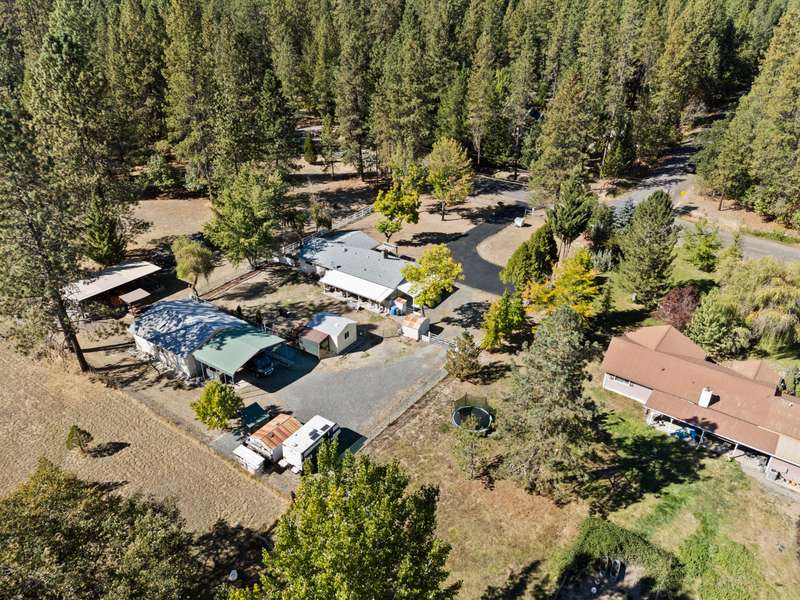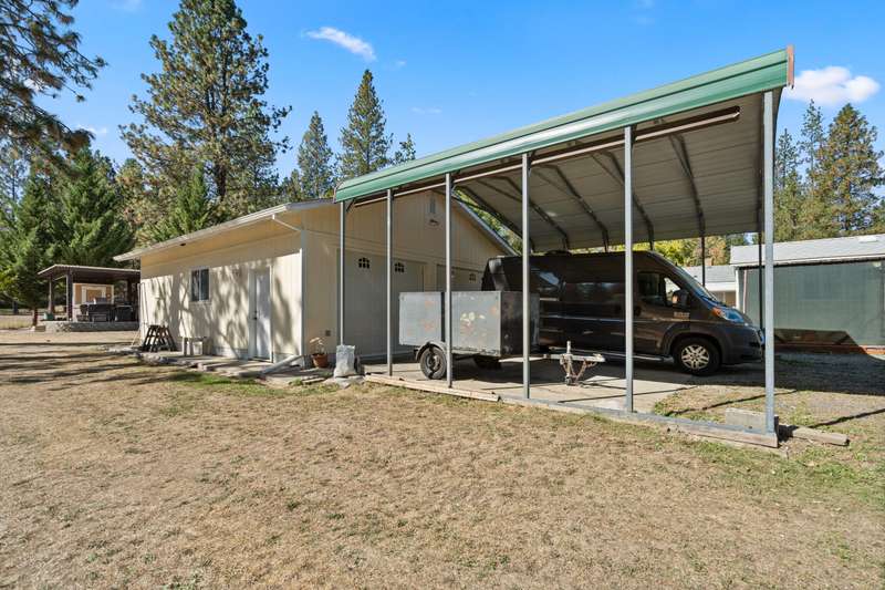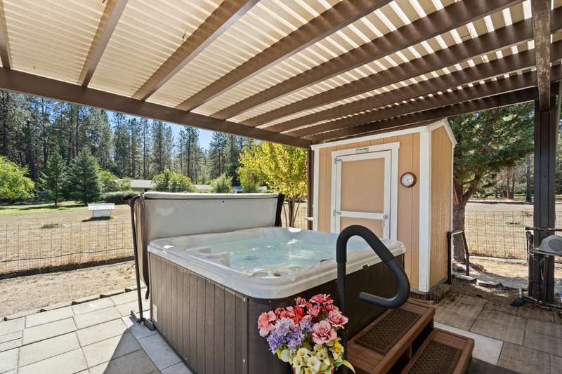 Small Ranchette home, 1149 sq ft, 3-bedroom, 1-bath home situated on 1 acre, perfect for those seeking comfort, functionality, and space for hobbies or small farm animals. Home Features: Cozy living with a pellet stove and split system heating/air for year-round comfort, updated kitchen. Attached single car garage plus an additional 32 x36 two-car garage/shop area. Cool storage cellar attached to the house. Covered rear patio for outdoor relaxation and entertainment. 20x40-pergola with a nice hot tub and private changing room. Fenced and cross-fenced acreage, ideal for small farm animals. 20x26 metal-framed canopy for RV Storage, plus multiple metal and wood storage structures for all your yard storage needs. This property combines comfortable living with nice outdoor amenities, making it an ideal small ranchette for country living. Contingent on Seller locating suitable housing.