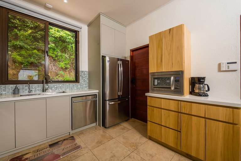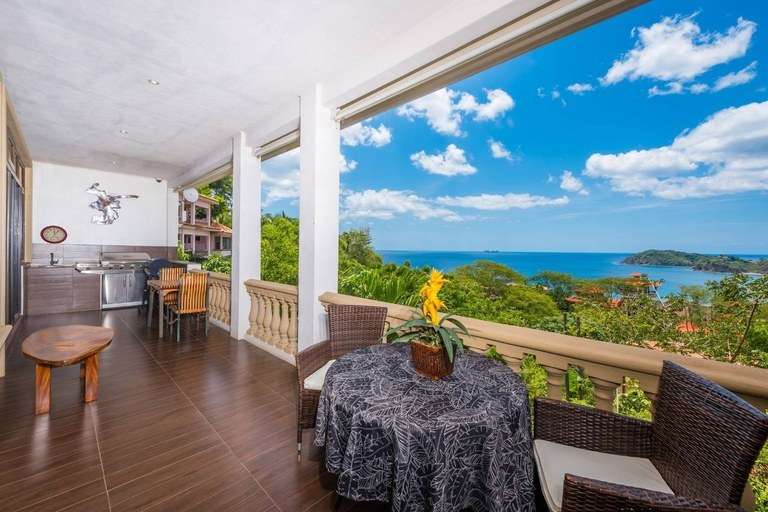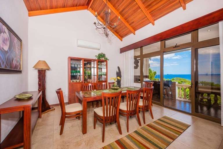 The pool area and patios feature ocean and marina views, guitar shaped pool with infinity edge overlooking the new Flamingo Marina, BBQ grill, Full bathroom with shower on the pool deck, and flower covered deck for watching the best sunsets Costa Rica has to offer! Listen to the sound of the ocean waves from the pool and watch the parakeets and parrots rest in the trees above.
