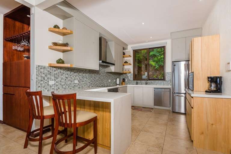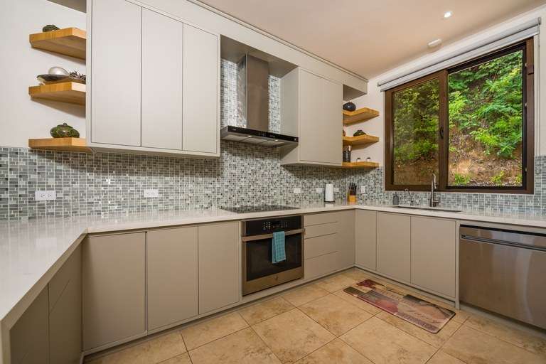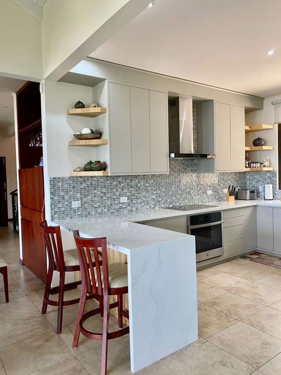 Beautifully crafted , custom-made, gated entry greet you upon arrival to this home. Entering the home, a professionally decorated, spacious floor plan, lined with a wall of full length glass sliding doors facing amazing ocean views, embraces the essence of indoor-outdoor living. Brand new, fully-equipped designer kitchen ready to accommodate the chef's every need. Additionally, this is one of the few homes in the area with a generator. Two car garage and outside parking pad for additional parking.