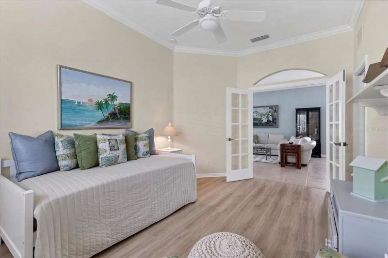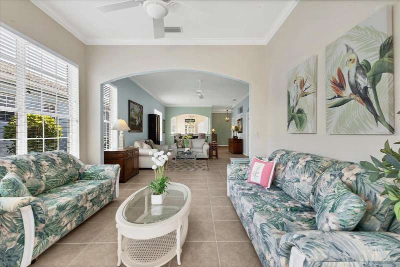 Welcome to this lovely 3-bedroom, 2.5 bath home in The Buckingham Meadows of St. Andrews within the Plantation Golf & Country Club offering timeless charm and comfort in one of the areas most desirable communities. Thoughtfully decorated in a soft, neutral palette and fully furnished, this home is truly move-in ready. Step inside and you'll find crown molding throughout, creating an elegant touch in every room. The spacious layout includes a bright Florida room that seamlessly adjoins the main living space and leads to a screened lanai, where you will enjoy serene views of the preserve and pond. A perfect blend of privacy and tranquility. The home also features a two-car garage and plenty of living space designed for both relaxation and entertaining. Beyond the home, residents of Buckingham Meadows at St. Andrews enjoy the wonderful pools in their community. A variety of golf and social memberships at The Plantation are available but not mandatory. Enjoy the perks at your own pace! Conveniently located near The Wellen Park Town Center, Atlanta Braves Training Facility, local beaches and downtown Venice. Whether you're seeking a full-time residence, a seasonal getaway, or an investment opportunity, this home is the home for you. With its desirable location and serene setting, this property offers a fantastic opportunity to experience Florida living at is finest. Don't miss your chance to own in one of the area's premier golf communities.