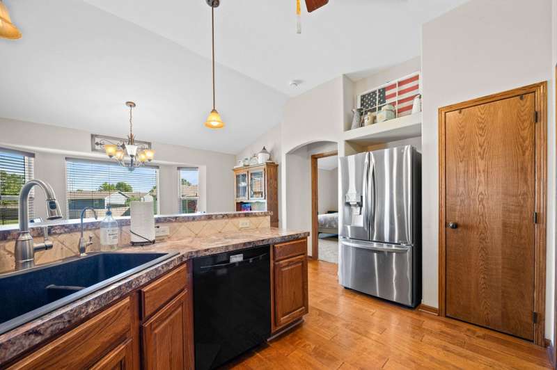 This beautifully maintained, move-in ready ranch offers incredible value with close proximity to the community fishing pond, no HOA, no special taxes, a new HVAC system, Culligan water softener, and a newer roofgiving you both peace of mind and long-term savings. Tucked away on a quiet cul-de-sac, the home welcomes you with an open floor plan, vaulted ceilings, and abundant natural light. Fresh updates and upgraded flooring create a clean, inviting feel throughout the main level. The newly finished basement adds impressive living space with a large family/rec room and a fully finished fourth bedroom. Electrical has already been wired for an easy addition of a fifth bedroom, giving you room to grow without the hassle. At the heart of the home, the kitchen is designed for both style and function with warm cabinetry, pantry storage, under-cabinet lighting, and a breakfast bar that opens seamlessly to the dining area. Step out to the covered deck and patio to enjoy evenings outdoors in your spacious yard. The private master suite is a true retreat featuring dual sinks, a soaking tub, a separate shower, and a walk-in closet. Two additional bedrooms and a full bath complete the main floor, while the unfinished view-out basement offers endless potential for additional living space, bedrooms, or a recreation area. Situated just steps from the neighborhoods stocked fishing pond, walking paths, and playgrounds, youll enjoy a lifestyle that blends quiet neighborhood living with outdoor amenitiesall without the burden of HOA fees or special taxes. The new HVAC system and newer roof ensure major updates are already taken care of, so you can move in and enjoy with confidence. This home combines thoughtful upgrades, flexible space, and an unbeatable locationmaking it a rare find in Park City.