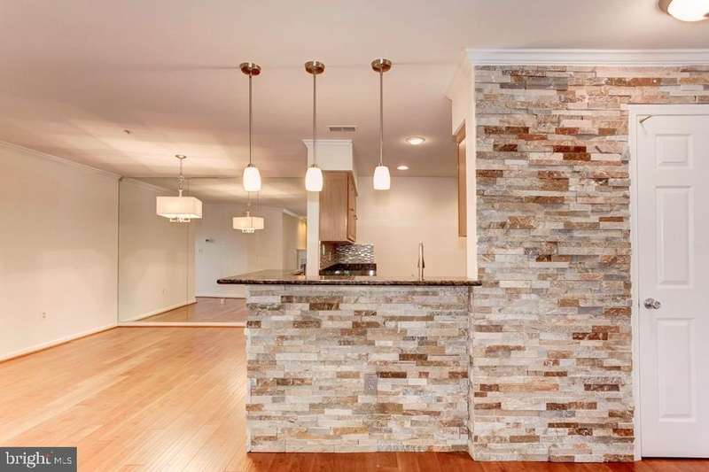 Welcome to 6101 Wigmore Lane Unit C, a stunning 2 bedroom, 2 bath condo located in desirable Kingstowne. This bright and cheery home features a kitchen with granite counters, stainless-steel appliances, a breakfast bar and an accent wall of natural stone tile. Beautiful wide plank hardwood floors flow in the living room, dining room, kitchen and hallway, and stylish updated lighting has been installed throughout. Relax by the cozy fireplace in the living room or step out and unwind on the oversized patio. The owner's suite has a large walk-in closet with custom built-in shelving and a private bath with dual sink vanity, jetted Jacuzzi tub and separate shower. There is also an in-unit washer and dryer for easy convenience. Kingstowne residents can enjoy a variety of amenities including swimming pools, fitness centers, walking paths, tennis and basketball courts, tot lots/playgrounds and numerous community clubs and activities. It is also conveniently located close to Kingstowne Town Center, 2 Metro Stations and all major commuter routes.