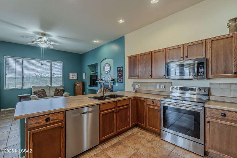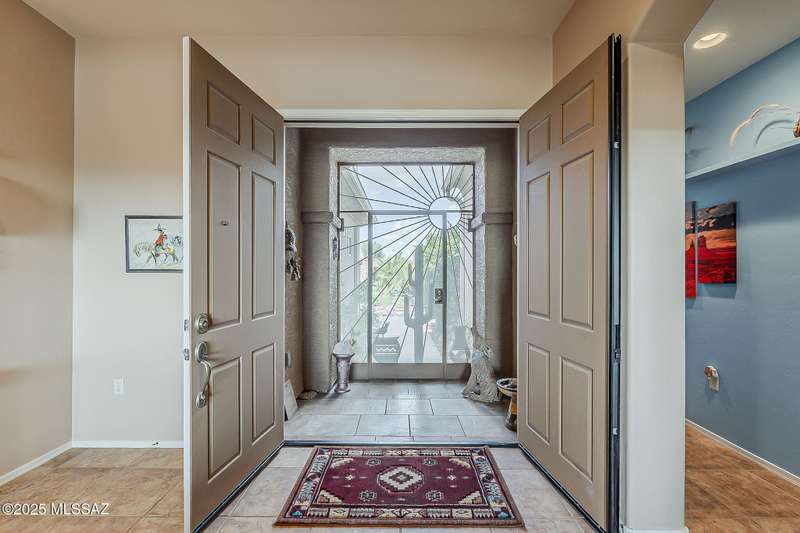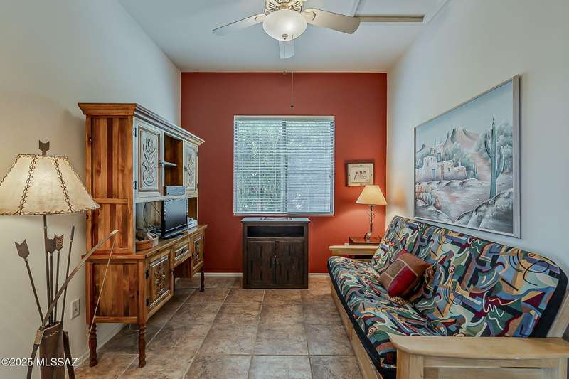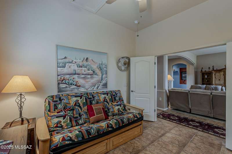 Live the Southwest dream in this bold and beautiful 2 bed/2 bath home with a spacious den PLUS a bonus hobby-laundry room. New roof, newer A/C, new water heater & fresh interior paint make this home move in ready! Step inside to the vibrant Southwestern colors and tile which add warmth & style. The kitchen has been refreshed with a new sink, microwave & dishwasher. Relax on the shaded patio with crank-down screens & a wrought iron decorative windbreak, while marveling at the sweeping mountain views. Enjoy privacy with no rear or west side neighbors, along with unobstructed views of open desert landscape through a newly engineered view fence, designed to maximize scenic beauty while offering peace of mind. Located in a gated community close to GVR centers. Your southwest sanctuary awaits!