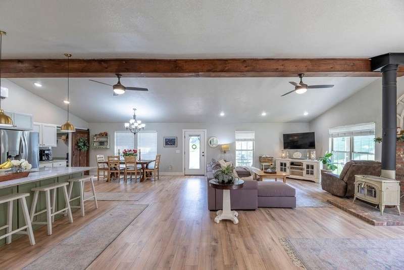Seller is willing to Split Land. This AGENT owned property has 10+ acres, 2321sqft, 2 bedroom/2 bathroom,700+sqft of heated/cooled flex space that could be converted to a bedroom. Textured metal roof, spray foam insulation, commercial grade mini-splits, and a wood burning stove! This all electric home features a 6' tub and custom tiled dual head shower with quartz countertops in both bathrooms. A deck overlooking the pond and woods, a porch swing patio view of the valley, a grill patio for entertaining, and 1ac parceled piece of land with power and water for additional fun or investments. Reference other listing 1328700 for less land