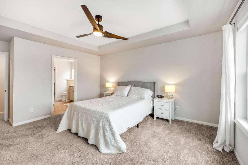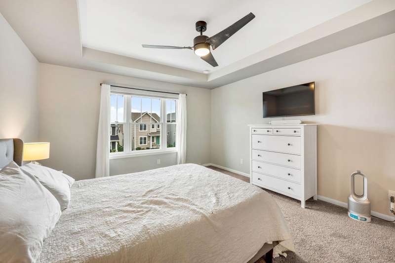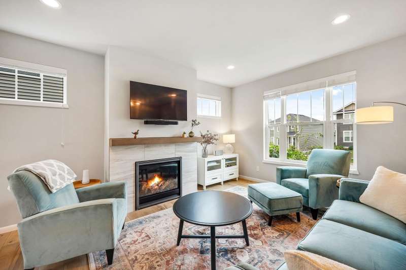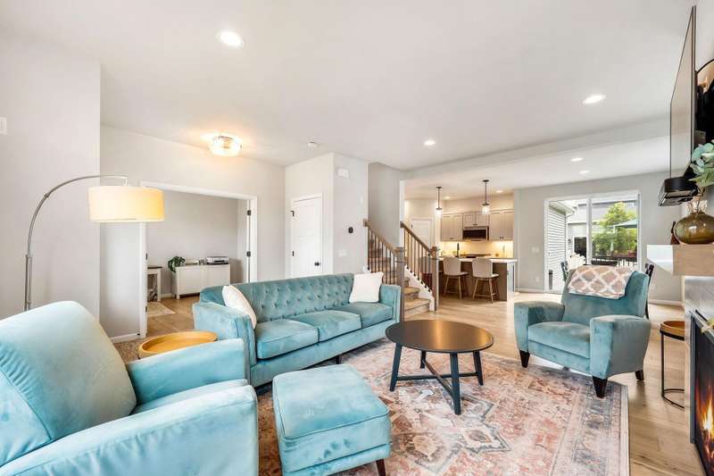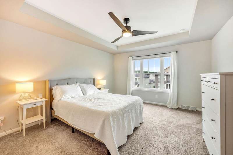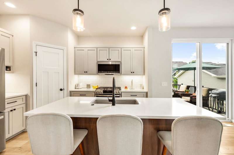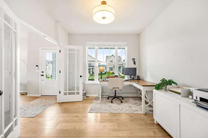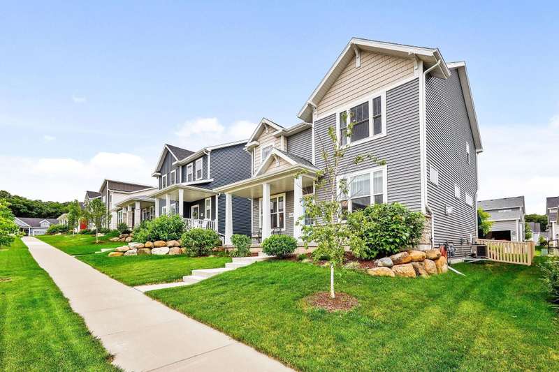 This 3 year newer house is sure to impress! The moment you walk up to this 2 story Prairie/Craftsman home and relax on the covered porch, you can see and feel the warmth. Once inside, enjoy the views with 9 ft ceilings and oversized windows bringing in tons of natural light. The main floor, open concept features LVP flooring, fireplace, large kitchen island, quartz counter tops, walk-in pantry and all stainless steel appliances. In addition, a flex room, half bath and laundry room. Walk out to composite deck and fenced yard. The second floor has 3 large bedrooms, 2 full baths and plenty of closet space. The large primary bedroom has beautiful views, spacious en suite and walk-in closet. Unfinished basement stubbed for full bath, ready for your ideas and additional finished SF.