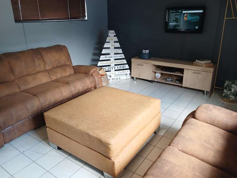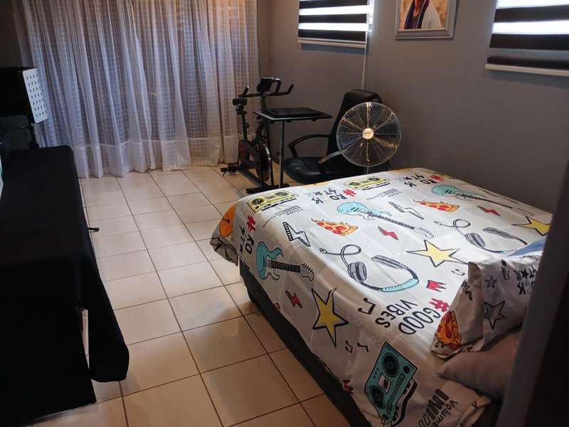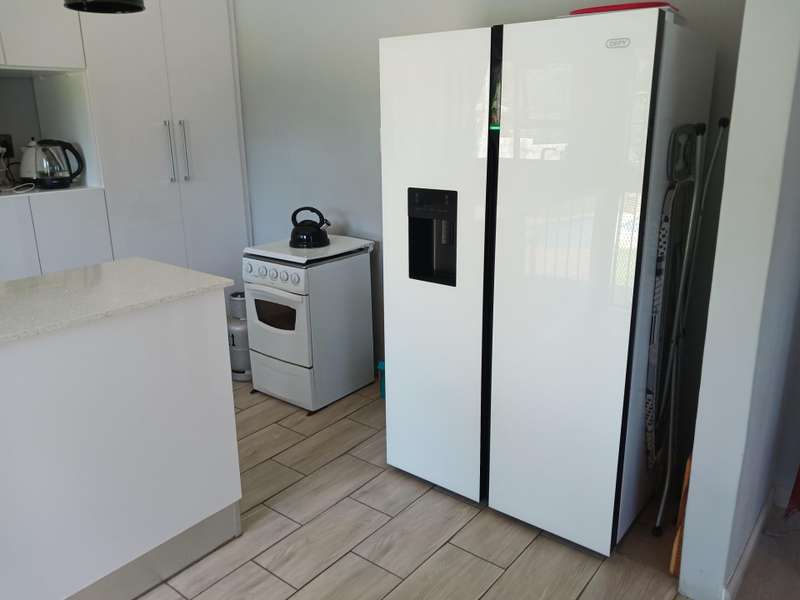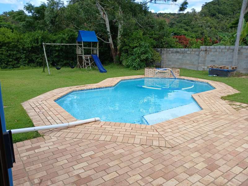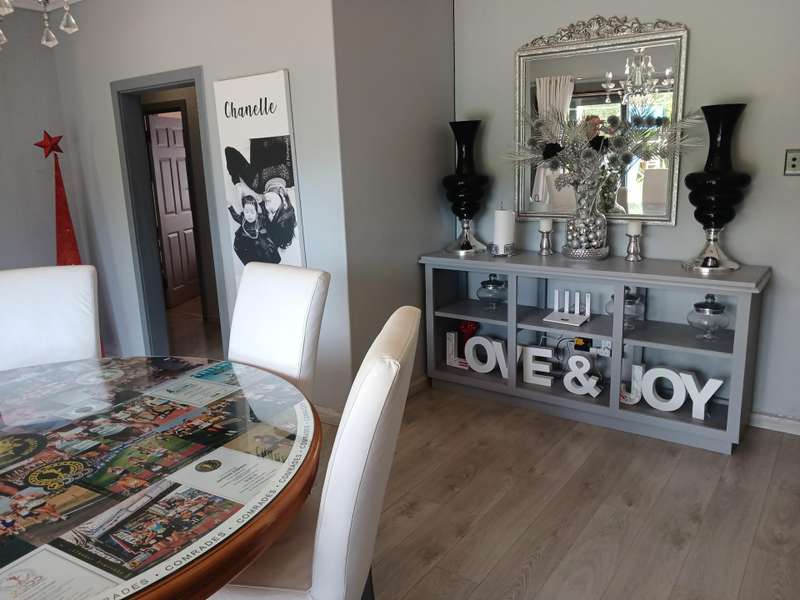 This pristine home has much to offer with its riverfront position. The entrance is down a passage into a open plan dinning room and kitchen. The kitchen has Caesar Stone Counters, fitted cupboards and space for a double fridge. The lounge is separate and opens up on the pool area, a kiddies area and the riverside. The home boasts 3 bedrooms all with build in cupboards and two bathrooms. There is a study and guest bedroom off the lounge. The home is fully walled and the double garage door is remotely operated. The entrance gate is also remotely operated. BONUS. Electricity is Prepaid.