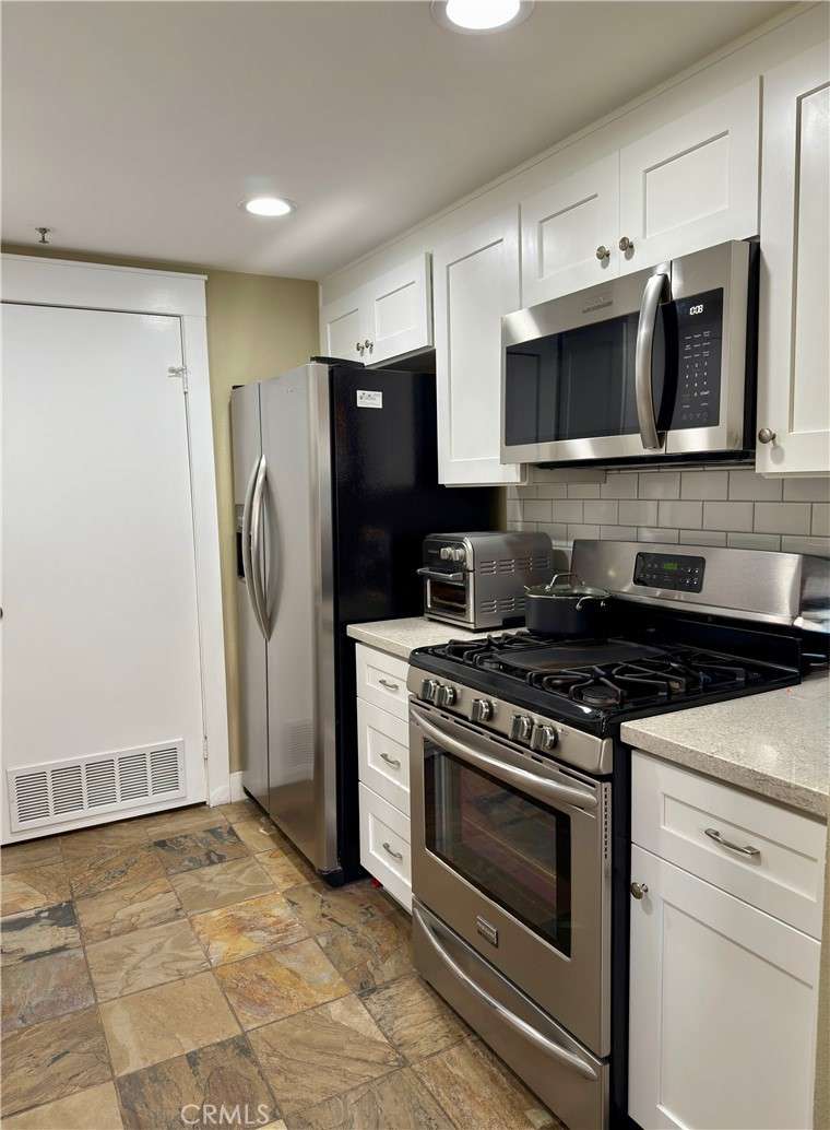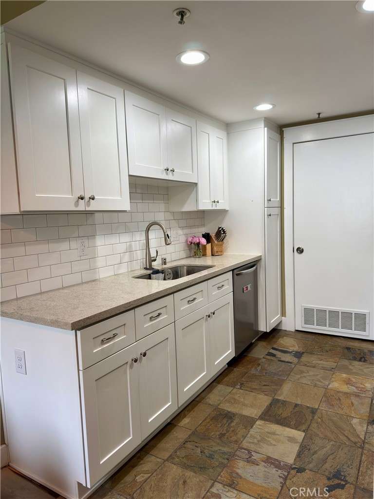 Brookstone two bedroom two full bathrooms condo in Huntington Beach. This is two bedroom ensuite. The unit is all one level and the lovely kitchen with eating area has been remodeled not too long ago with some pull out draws, one deep sink and granite like counter tops. Fire place in the living room and a nice patio off of it. There is also a patio off the primary bedroom. Ceiling fans in both bedrooms. One of the bedrooms has wood like blinds and both bathrooms has newer vanities also. Slate tile in kitchen, living room and hallway except for the bedrooms which are carpeted. Two master suites and both bathrooms have tubs and showers and neutral color tile floors. Sprinkler system in the ceilings in case of fire, 1 car garage and 1 assigned parking space. Association dues cover cable, internet, trash, pool, landscaping and maintenance of common areas. Complex is tucked away and is quite quiet . It has a swimming pool and spa with outdoor shower and bathroom facility. Washer/Dryer is approximately about 3 years old and is included with the purchase. BUYER TO VERIFY ALL INFORMATION IN THE MLS.