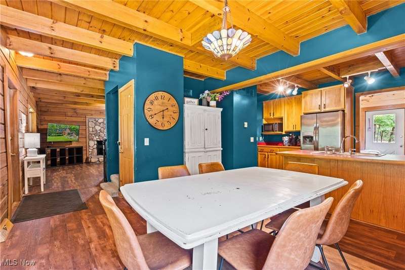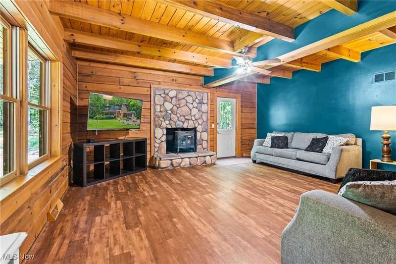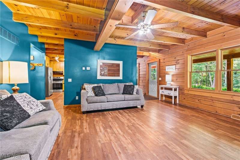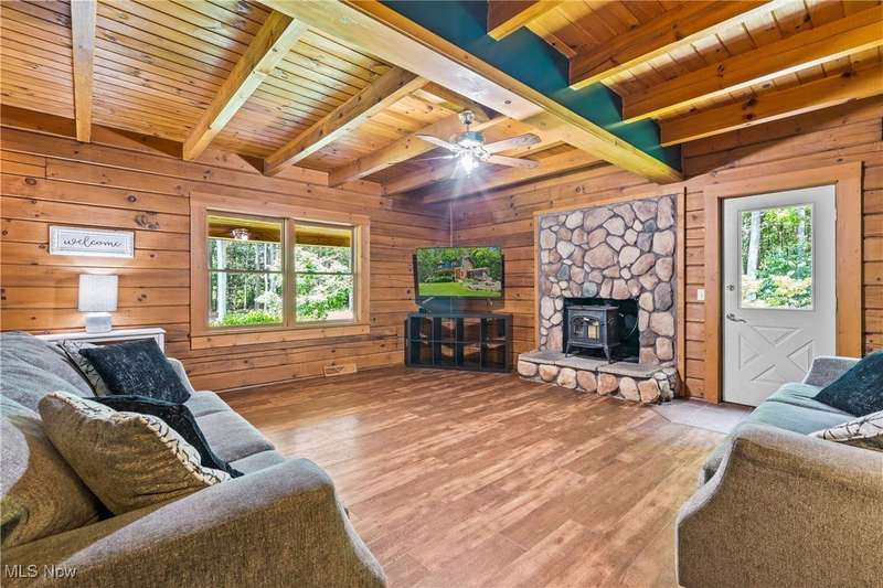 Discover the ultimate in seclusion and serenity with this beautifully maintained, log cabin nestled on 15 wooded acres. Whether you're looking for a peaceful retreat or a thriving short-term rental, this property offers the best of both worlds. Step inside to find a warm and inviting space featuring updated flooring on the main level (2020) and new carpet on the second floor (2023). The heart of the home includes a fully equipped kitchen with a new dishwasher (2024) and stove (2023), making meal prep a pleasure. The spacious great room boasts a wood-burning stove that creates a cozy, welcoming atmosphere all year round. Enjoy the peace of mind that comes with upgrades, including a new hot tub (2023), water softener (2022), and a serviced geothermal system (2025), ensuring efficient comfort throughout the seasons. The exterior logs and deck were professionally cleaned and stained in 2023, enhancing the natural beauty of the home and adding years of protection. Outside, the property invites endless exploration, privacy, and potential. Whether it's relaxing in the hot tub under the stars or enjoying a morning coffee on the deck surrounded by nature, this is your personal haven. Currently a successful Airbnb, the property grossed $67,000 in 2024, with rates of $249 per night, $299 on weekends, and a $250 cleaning fee-an incredible opportunity for continued income. Don't miss your chance to own this unique log cabin getaway with proven income potential and timeless appeal. Whether for personal use or investment, this Paris Township gem is truly one of a kind.