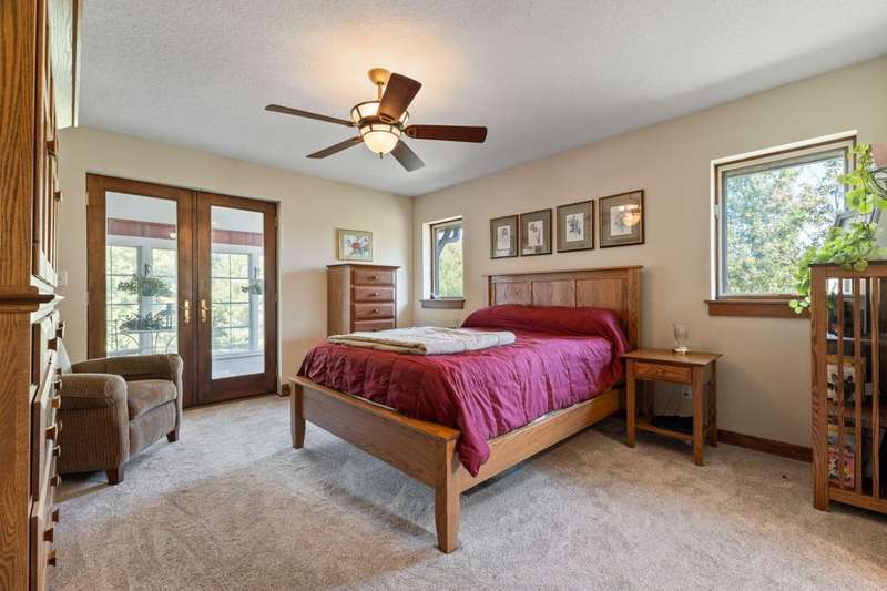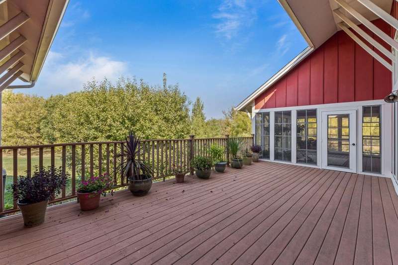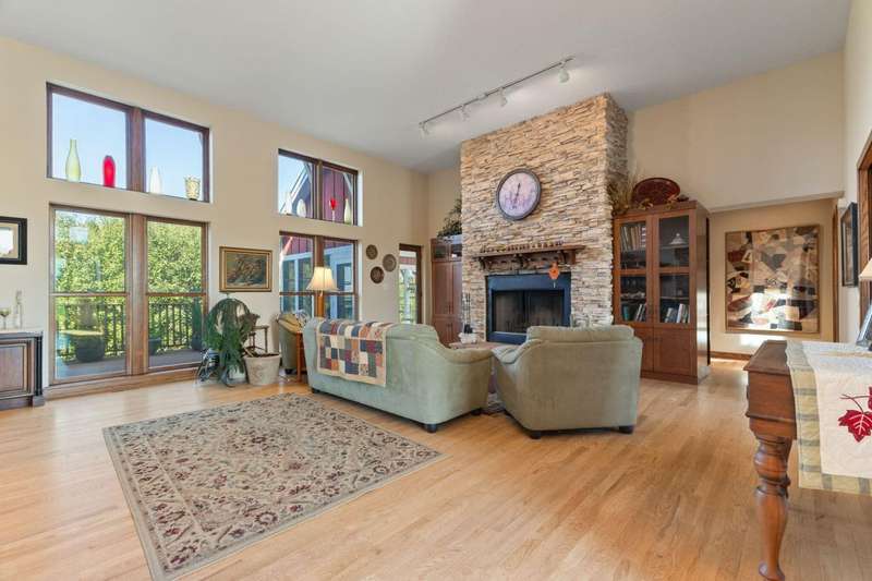 629 Sunset Pl is tucked away on a secluded private lane and set on over seven acres that stretch beyond a peaceful, meandering creek. This custom-built, award-winning concrete home offers a rare blend of privacy, elegance, and modern comfort with over 3,700 finished square feet of beautifully finished living space. Designed for strength, efficiency, and lasting quality, its solid concrete construction ensures exceptional quiet, energy savings, and low maintenance. Inside, the large kitchen features warm oak cabinetry, a center island, and a Magnaini wood-fired pizza oven from Italy, perfect for unforgettable gatherings. The sun-filled living room boasts nearly floor-to-ceiling windows, hardwood floors, and a dramatic 48-inch fireplace to anchor the space. A bright, versatile office or den with custom built-ins and sliding pocket doors offers a peaceful retreat or private workspace. The main-floor primary suite includes an ensuite bath, dual walk-in closets, and access to a screened porch and spacious deck with wooded views. The main-floor laundry, drop zone, and flexible sunroom add everyday ease and convenience. The walkout lower level features a second kitchen, temperature-controlled wine room, two bedrooms, a full bath, and flex spaces ideal for a theatre, gym, playroom, or ample storage. Outdoors, enjoy the established garden, expansive yard, and the tranquil beauty of nature--just minutes from town yet worlds away from the ordinary.
