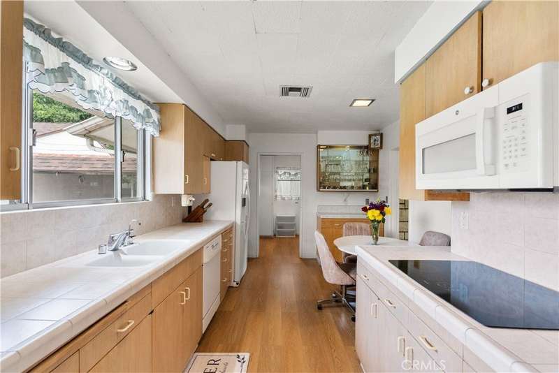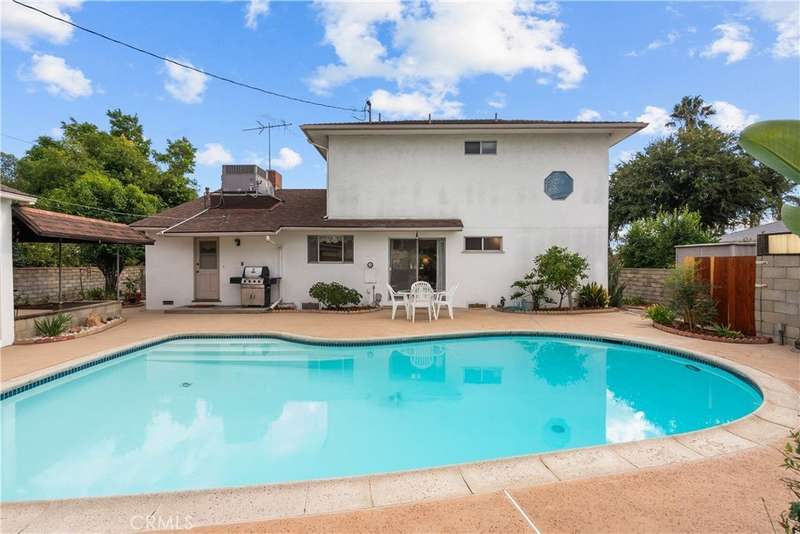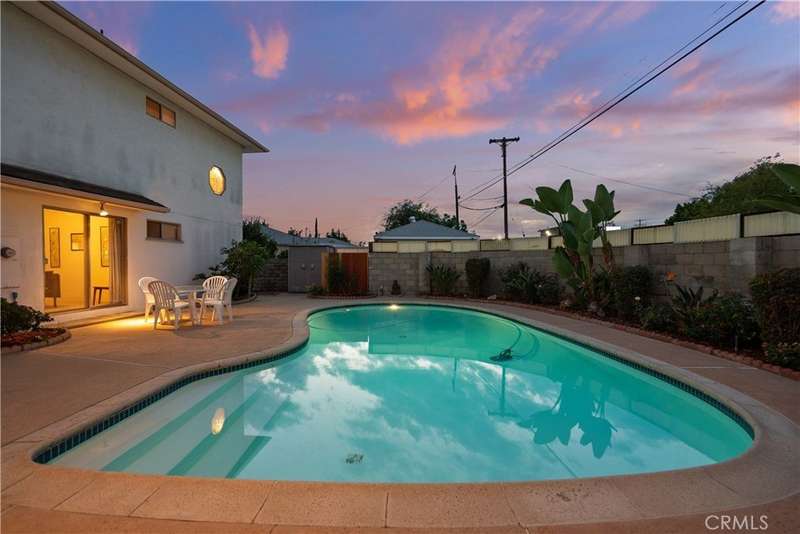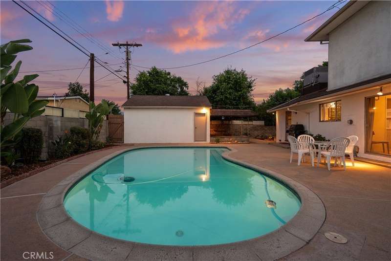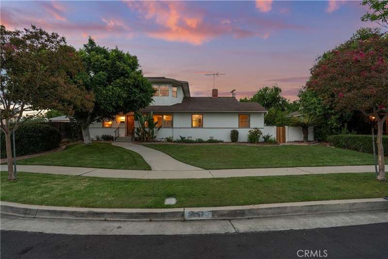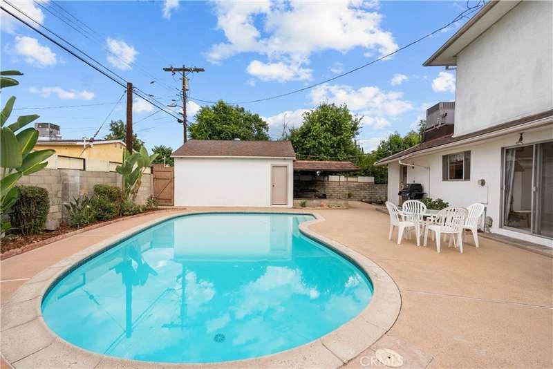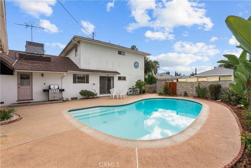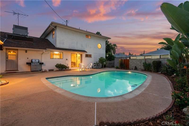 Welcome to this delightful mid-century residence, original family owned, proudly offered for the first time on the market. Located in a desirable North Hollywood neighborhood and surrounded by a welcoming community experiencing ongoing revitalization, this entertainer’s dream blends timeless character with thoughtful modern upgrades. Boasting three spacious bedrooms, three bathrooms, a den, and a sparkling swimming pool, this home is designed for comfort, function, and indoor-outdoor living. A inviting front porch sets the tone as you enter through the entry foyer into the home. The sun-drenched living room features expansive windows that fill the space with natural light—ideal for relaxing evenings or after-dinner conversation. The adjacent den, complete with a handsome wood-burning fireplace, offers the perfect cozy space to unwind with a book or enjoy movie night. At the heart of the home is a spacious cook’s kitchen featuring tile countertops, ample cabinetry, and a sunny breakfast nook. Equipped with an electric double oven/range, dishwasher, microwave, and refrigerator, this kitchen is ready for everyday meals or entertaining. A separate dining room offers the perfect setting for intimate family dinners or festive gatherings. Nearby, a laundry room provides abundant storage and backyard access for added convenience. Upstairs, the spacious primary suite is a serene retreat, complete with a walk-in closet, secondary mirrored closet, and en suite bathroom featuring a dual-sink vanity, soaking tub, tiled shower, and built-in storage. Downstairs, a secondary primary bedroom also offers an en suite bathroom and walk-in closet—perfect for guests or multi-generational living. The third bedroom is generously sized with ample closet space and easy access to a large hall bathroom with a shower-over-tub combo. A home office nook offers a great space for remote work, study, or a home gym setup. Step outside to your private backyard retreat, featuring a sparkling pool, covered patio, and lush landscaping. The north-facing backyard enjoys morning sun and afternoon shade—ideal for al fresco dining, lounging by the pool, or weekend entertaining. Conveniently located near top-rated shopping, dining, entertainment, and major freeways and transit, this North Hollywood treasure is ready for its next chapter. Whether you're hosting family gatherings, relaxing poolside, or enjoying the community vibe, this home offers the perfect blend of comfort, charm, and location.