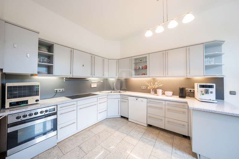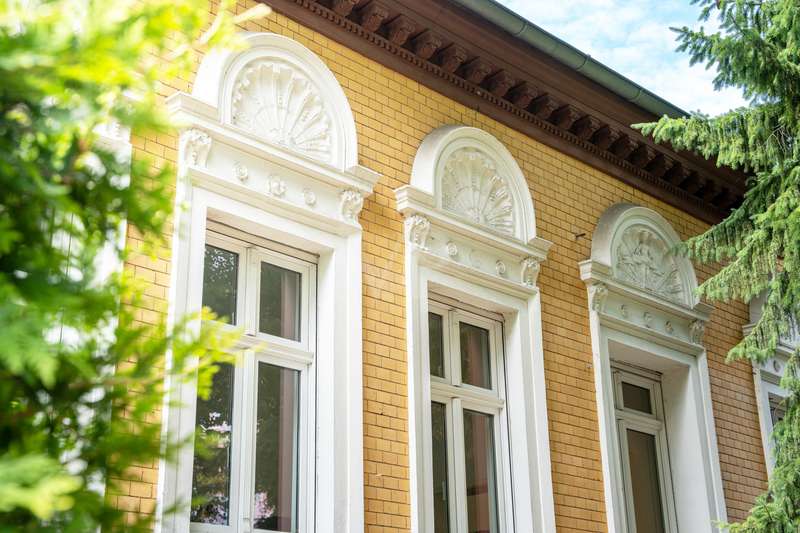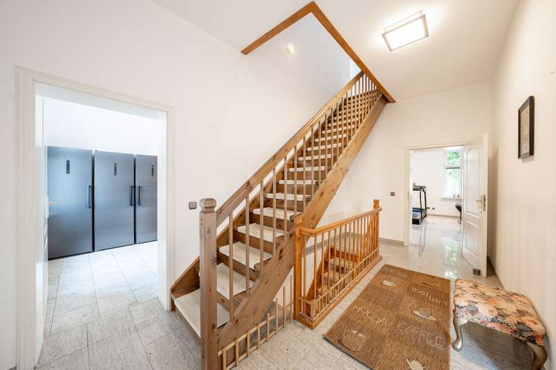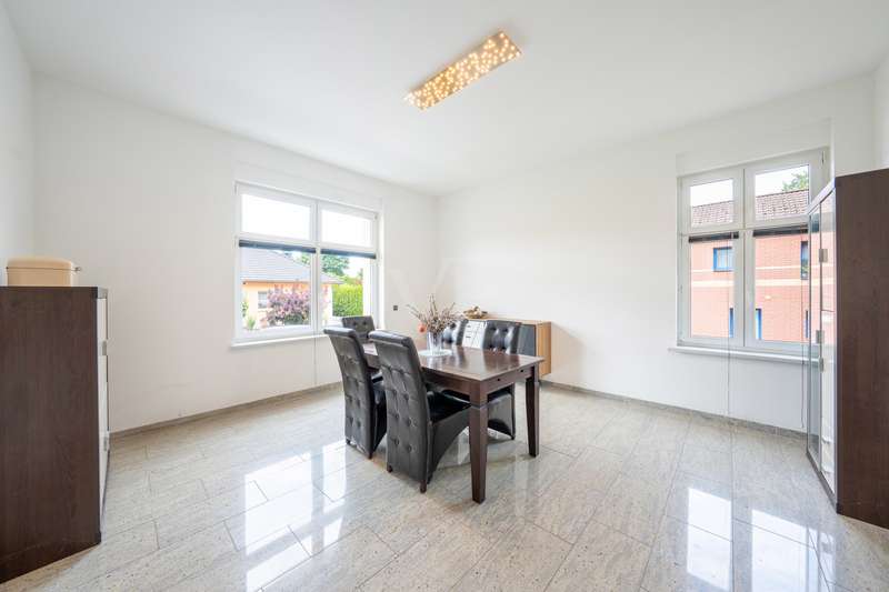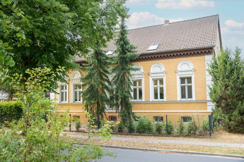 In the middle of Genshagen - a charming district of Ludwigsfelde - this stylish detached house awaits you on a spacious plot of land measuring approx. 1,162 m² in total with three plots. This property combines timeless elegance with modern living comfort and offers plenty of space for your ideas. Built around 1900 in high-quality, solid construction, the classically inspired clinker brick façade with white accents reflects the architectural style of historicism - architecture that leaves a lasting impression. Inside, you can expect well thought-out floor plans, light-flooded rooms and a ceiling height of approx. 2.90 m, which underlines the open, spacious feeling of living. The highlight of the first floor is the spacious living and dining area, which presents itself as the cozy center of the house thanks to its open design and fireplace. Large windows, electric shutters and the additionally heatable conservatory ensure a particularly pleasant living climate and plenty of natural light throughout the first floor. The kitchen offers plenty of space for culinary development and family life together. There are two separate toilets for guests on this floor - one for ladies and one for gentlemen. An additional storage room creates practical order in everyday life. A charming wooden staircase leads to the upper floor, which boasts three bedrooms - each with its own en suite bathroom. This rare feature guarantees comfort, privacy and value at a high level. The master bedroom also has a dressing area and direct access to the partially converted loft. The property has a full basement and offers generous heatable usable space with a power connection, natural light and separate access to the garden - ideal for a workshop, fitness area, storage or home office. The house is heated by a modern underfloor heating system combined with solar thermal energy and a hot water tank. Two to three outdoor parking spaces are available for your vehicles, including a parking space with a wallbox for electric vehicles. Fiber optics are already connected to the house and can be activated if required. This home combines architectural charm with functional comfort - perfect for anyone looking for spaciousness and perspective. See for yourself - and arrange a personal viewing appointment.