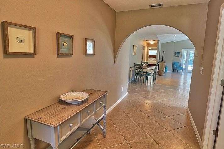 Everything is new! Be the First to enjoy this lovely house and its' location! Beautifully remodeled 3 bedroom, 2 bath home in Naples Park, just minutes from the beach, great restaurants on the beach and bay, and shopping at Mercato. Freshly painted throughout, all new "wood-look" tile flooring throughout, new cabinets, granite countertops and stainless steel kitchen appliances. This house offers an open and bright floor plan. The Living Room offers comfortable seating, a large Flat-Screen TV., and easy access to the lanai and screen pool area. The open kitchen has white cabinetry, beautiful granite counters and large bar area, and stainless appliances. The Master bedroom suite offers a king-size bed, set in a rich wood frame, matching dresser, flat-screen TV, and private bath with a walk-in shower. The guest bedroom has a queen-size bed, set in a white bed frame, matching end tables and dresser, flat-screen TV., and shares a bathroom with the 2nd guest bedroom, which has twin beds, matching white headboards, end table, and dresser. The screen-enclosed pool and lanai area has a covered area with an outdoor dining table and chairs, sitting area, loungers and gas grill. covered lanai with cozy seating overlooks the pool. The Owners are also providing a cooler, 4 beach chairs, beach towels, and an umbrella for their guests' use. Bike rentals are available at nearby bike shops. The perfect location! 1.4 miles to white sand beaches at Vanderbilt Beach and 1 mile to the Mercato with dining establishments, Movie theater and upscale shopping. You are just a short drive to the Waterside shops and dining, and further south into Downtown Naples, where you can stroll down 5th Ave. S. and visit the 3rd Street South shops, from unique art boutiques to casual, and sophisticated outdoor dining.