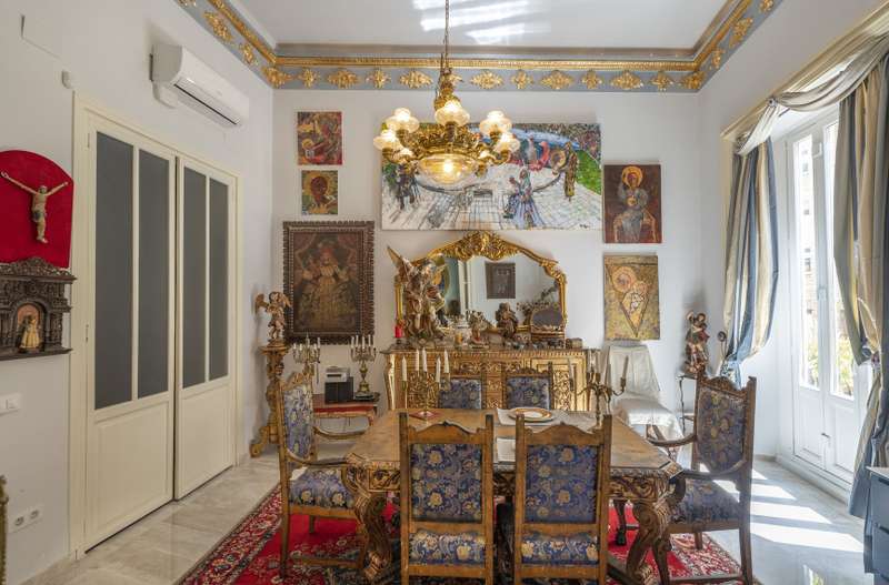 This elegant apartment of approximately 300 m² is located in a historic residential building situated in the old town of Valencia, next to the emblematic Calle de la Paz, as well as the Plaza de la Reina and other iconic buildings in the city. The entrance features an impressive marble lobby with a decorated ceiling and solid wood doors that provide a touch of grandeur. The interiors combine classic and modern elements, highlighted by a living room with vibrant murals, high ornate ceilings, and exceptional natural lighting. The common areas include an art gallery that adds a cultural touch, a dining room, and a contemporary kitchen equipped with avant-garde design furniture, a dining area, and access to an interior patio. The resting area consists of a single bedroom currently used as a dressing area, a double bedroom, a full bathroom, and the master bedroom with a large leisure area that includes an office and a bathroom that also features a sauna. This property is a tribute to art and history, reflecting the passion of its current owners, making it an ideal residence for those seeking exclusivity in the heart of Valencia.