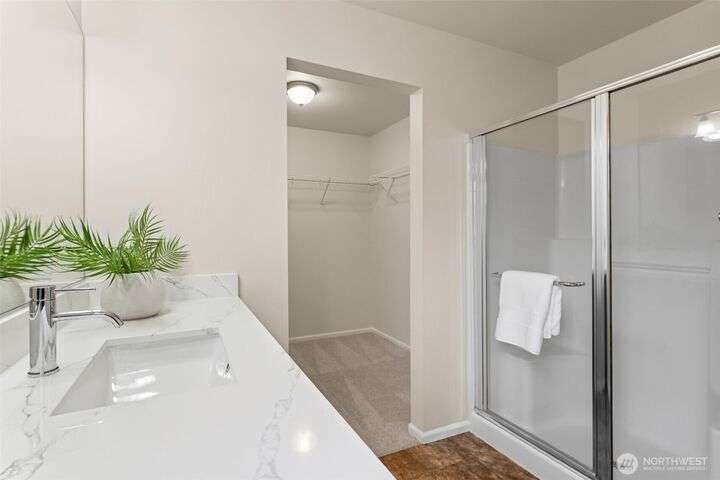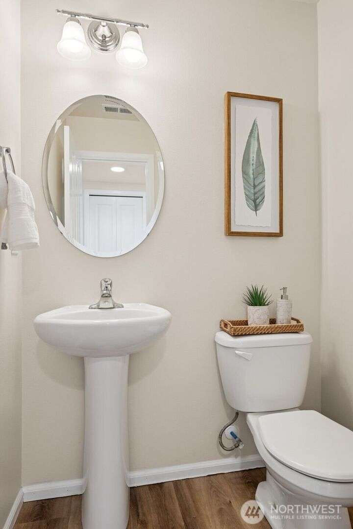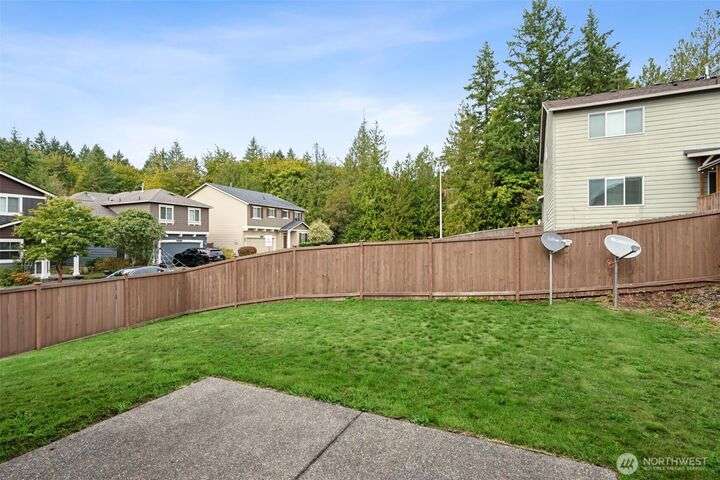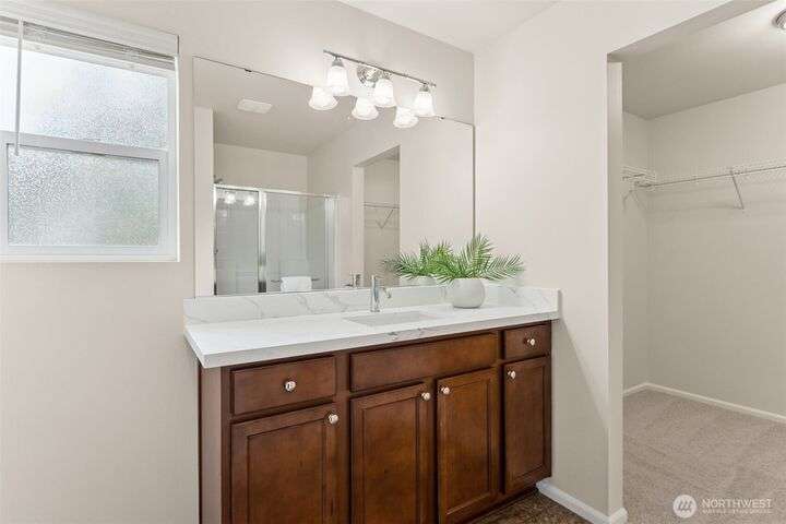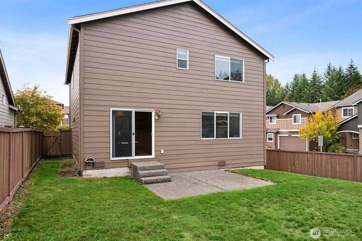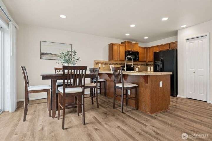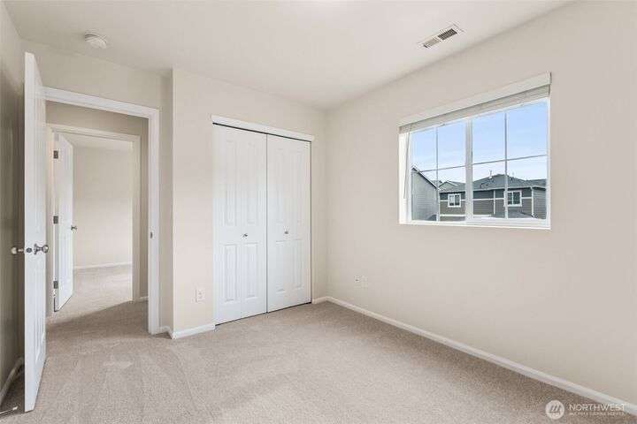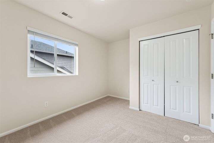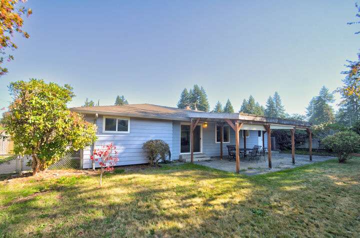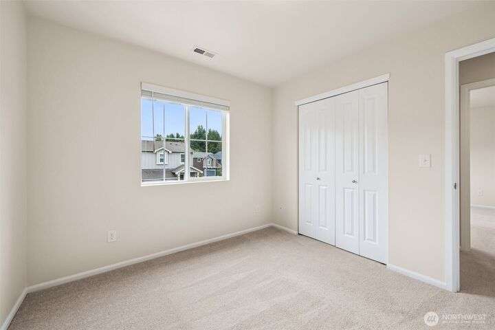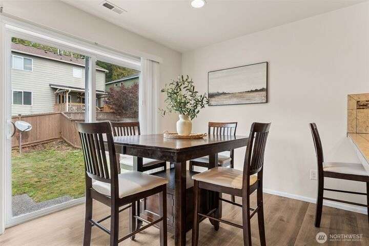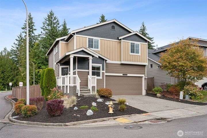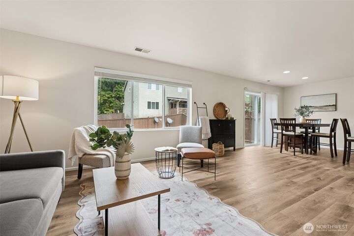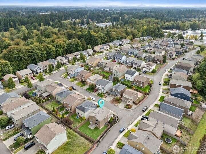 Situated on a desirable corner lot, this updated 4 br + den, 2.5 bth home features a 2-car garage & a fully fenced yard, offering great privacy. The open concept creates a spacious & inviting atmosphere, w/ all kitchen & laundry apps included for added convenience. A versatile main floor den serves perfectly as a guest bdrm, home office, or fitness space. The primary suite includes a walk-in closet & newly updated vanity w/ quartz countertop. 3 addl bdrms, a full bth, & conveniently located laundry rm complete the upper level. Stay cool during the summer months w/ CENTRAL AIR CONDITIONING. Enjoy the nearby neighborhood park, convenience to shopping, dining, schools, and easy access to I-5. All new flooring throughout & interior paint.