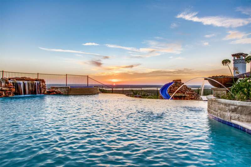 A once in a lifetime opportunity to own an elegantly intimate masterpiece sitting atop one of the highest points for hundreds of miles, with panoramic views! Spectacular views of the lake, Fort Worth, Las Colinas, AT&T Stadium! Designed for a luxurious lifestyle, the magnificent mansion features 8 bedrooms, 8.2 baths, 3 floating staircases, a resort style pool featuring two grottos, waterfalls and water features, a sunken fire pit, fire sconces, and a cabana with outdoor kitchen & bath. The gourmet kitchen has Wolf & SubZero appliances, quartz counters, custom wood ceilings including a wine room, & butlers pantry. The primary suite retreat features spa inspired bath!