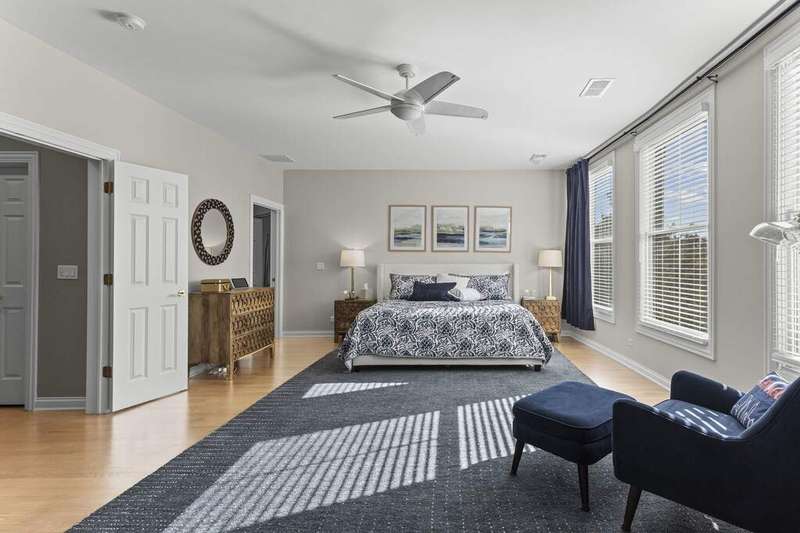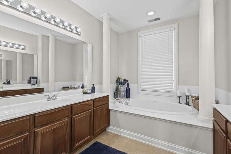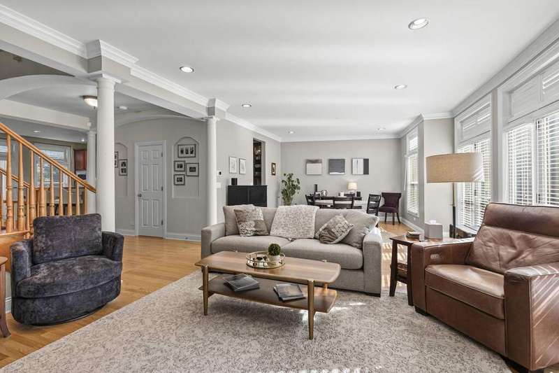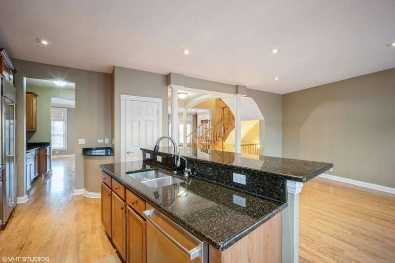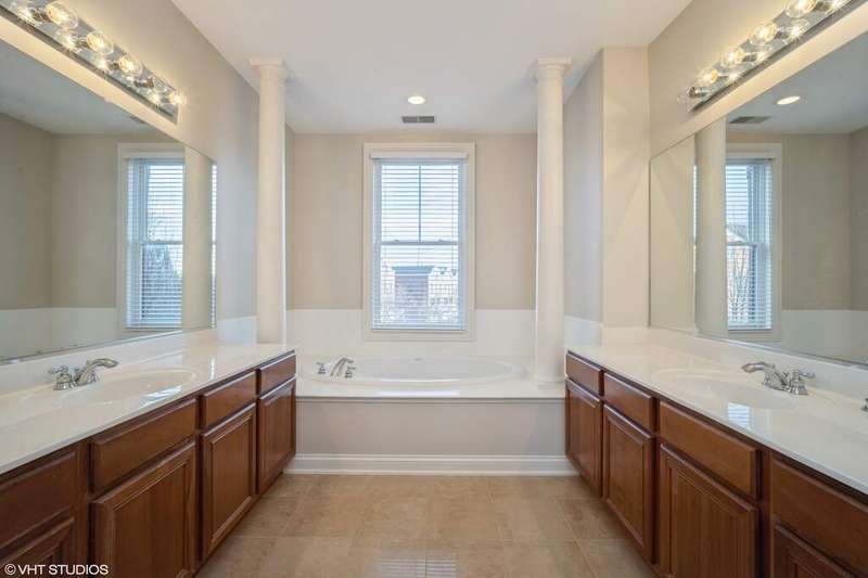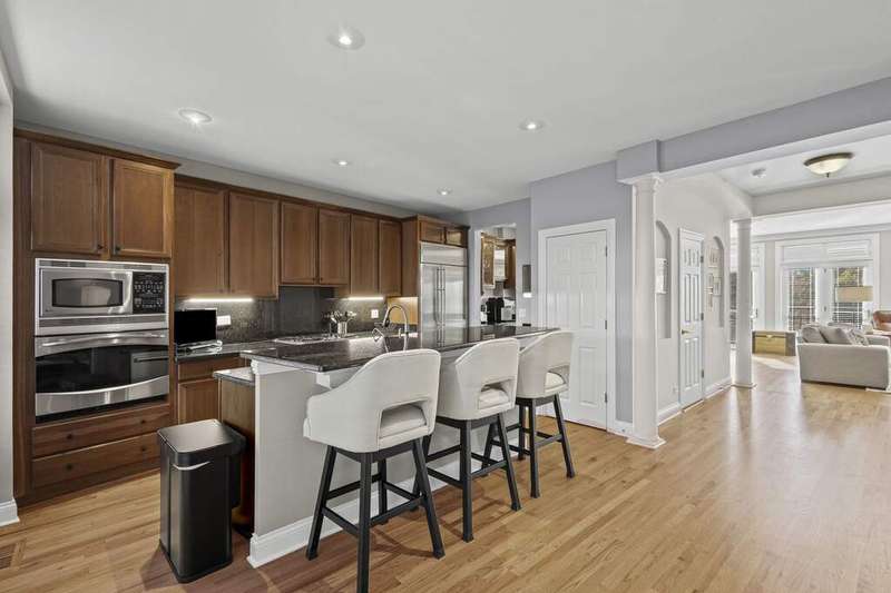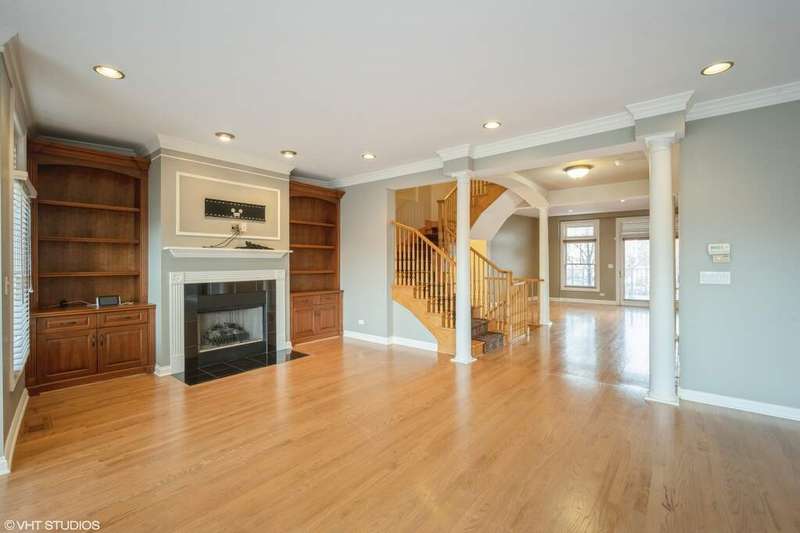 Elegant Townhouse in The Glen features 4 bedrms, 3.2 baths, a separate family room & a deep 2 car attached garage. Gourmet kitchen w/cherry cabinets, large eating area, 2 oversized butler pantries. $10K custom Persian Rug stair runner, crown molding, custom plantation shutters, custom closets, gas fireplace in living room. Gorgeous sunset views of golf course. It's not just a home, it's a lifestyle.