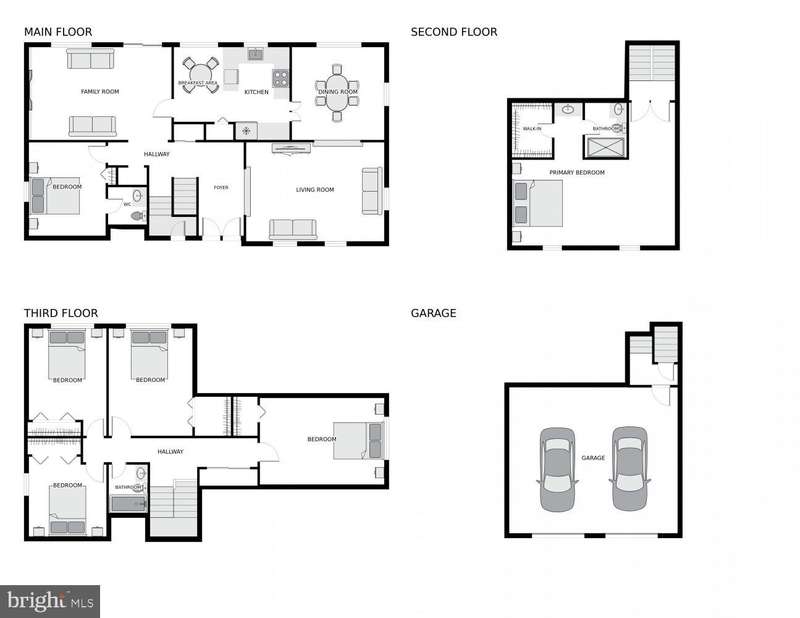 There is so much value in this beautiful home; it comes with so many updates! Entering the home, you are greeted with pristine traditional oak floors in the dedicated foyer, which are carried through the main level of the house. The main level also includes a kitchen, formal dining room, family room, and den. The updated kitchen has stainless steel appliances, maple cabinets, plenty of Silestone counterspace with an undermount sink, and a sunlit breakfast nook. The large family room has a brick wall fireplace with mantle. From the family room, the sliding glass door opens to a large patio in the fenced back yard. The first floor also features a private home office/den with a closet and access to the half bath. The den could also serve as a 6th bedroom. Heading up half a flight of stairs, the carpet has been replaced with beautiful hickory 5-inch wide wood flooring. The generously sized primary suite is on its own level for added privacy. It has a large walk-in closet, a dressing area with vanity & sink and a bath that features a maple vanity with granite top and glass enclosed shower. On the second floor, four additional bedrooms all boast of large closets. The largest bedroom has a wall in closet and added storage in each of the two the eaves. The hall bath has been recently remodeled. An enormous hall closet completes the top level. Finish it off with a two car garage, newly installed gutters with gutter guards, and two spare freezers and refrigerator. The house has fresh paint throughout the main living areas. Don't forget, the house also includes Montgomery Village amenities including pools, tennis/pickleball courts, jogging trails, lakes, shopping, and public transportation to get you there!