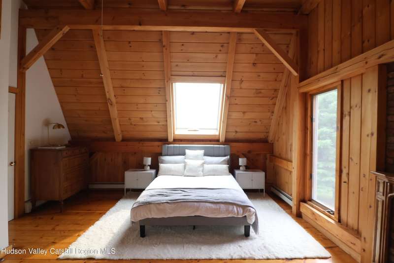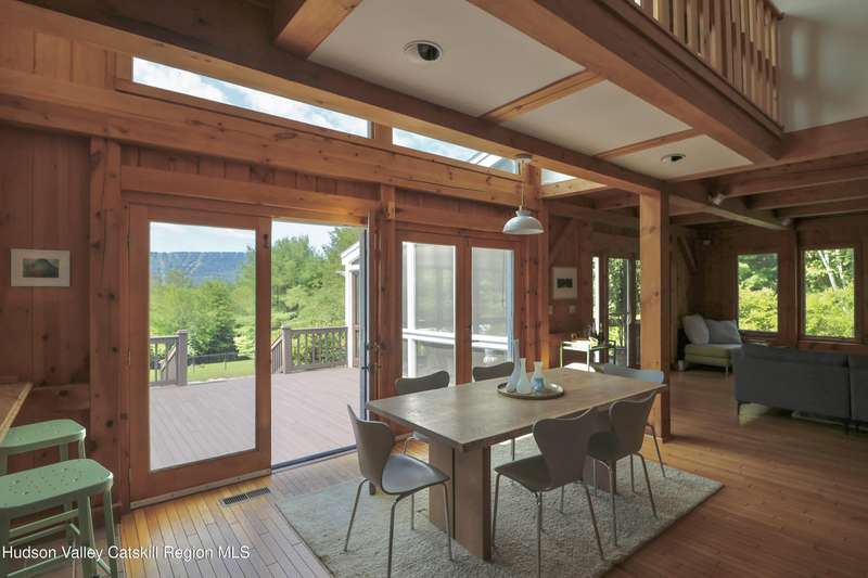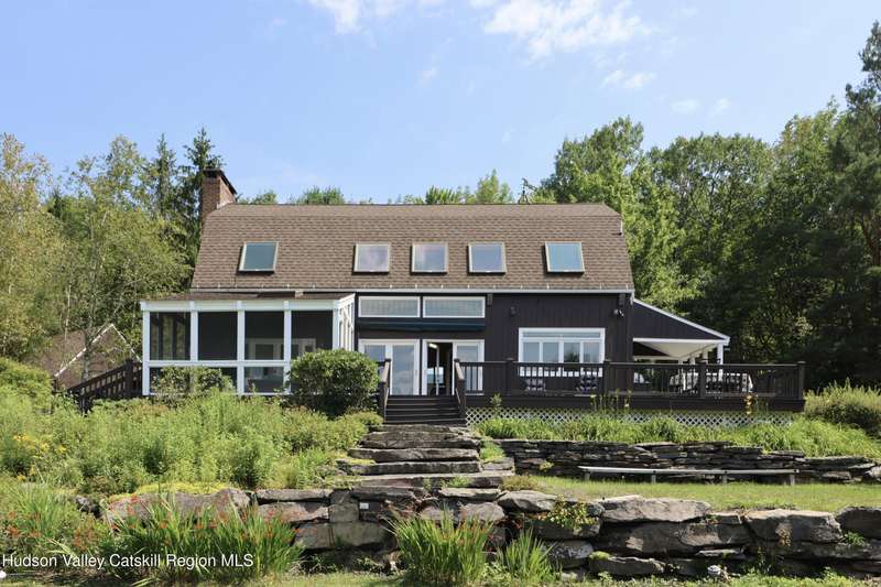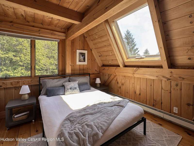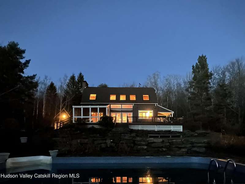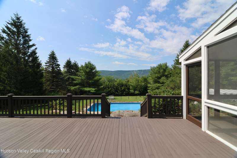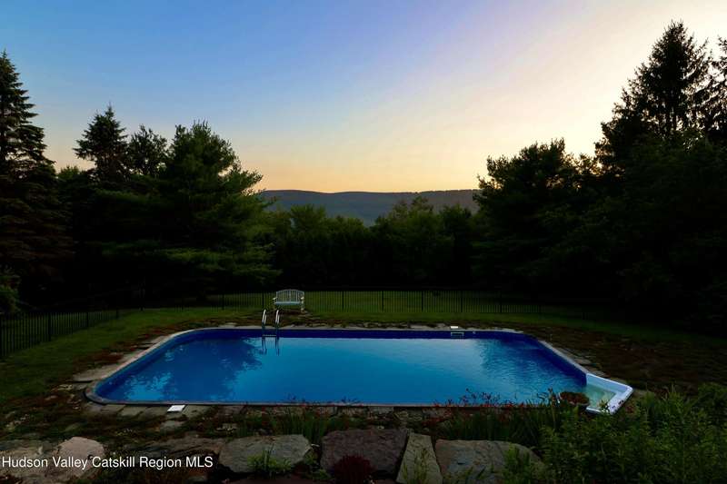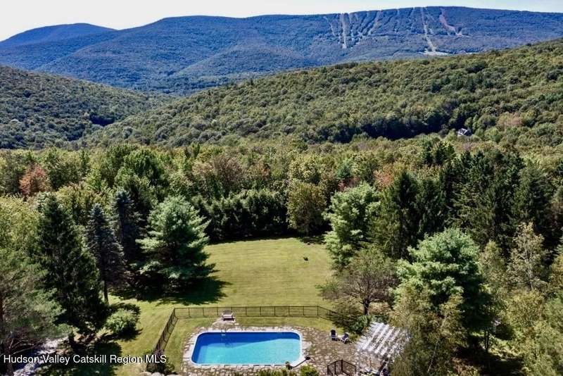 This cozy post and beam home in the Catskills is privately sited off a quiet country road on 14 private and serene acres. Enjoy breathtaking year-round mountain views, your own rolling meadows, woods to explore, and an in-ground swimming pool. This home has expansive decking, a screened-in porch, two fireplaces, and a soaking tub. Located in the heart of the Catskills, surrounded by several charming villages in Ulster and Delaware Counties, this home provides access to world class hiking, fishing, skiing, and fine dining. Inside, there is an inviting open floor plan featuring a spacious living room with a fireplace, an exquisite dining area with two sets of French doors which lead to an expansive deck with striking mountain and pool views. Another set of French doors connects the living room to a delightful screened porch ideal for dining or chatting with friends while gazing at the mountains. The chef's kitchen (with ample counter space) has a door leading to the built-in grill and is ideal for hosting family and friends. There is also a first floor guest room adjacent to a half bath.On the upper level there is a primary bedroom with vaulted ceilings, a wood burning fireplace, an ensuite bathroom, and a spa-like soaking tub. This upstairs area fosters a perfect atmosphere for unwinding after a day on the nearby slopes of Belleayre Ski Center, which is only five minutes away. There are also two additional guest bedrooms, each with lofts and a full bath, which offer ample space for visitors.This property is composed of four parcels spanning two counties, with potential for expansion. Explore the outdoors with your own garden and trails right at your doorstep. Or explore the vibrant villages of Phoenicia and Margaretville (each just 15 minutes away) where one can indulge in local dining, shopping, and outdoor adventures. This home provides access to skiing, fly fishing, hiking, biking, rail trails, and shopping in the nearby villages of Margaretville and Phoenicia, where you can also find spas and fine dining. 30 minutes to Woodstock, Andies, Bovina, Wyndam and Hunter. All this and more only two hours to the GWB.