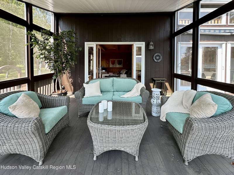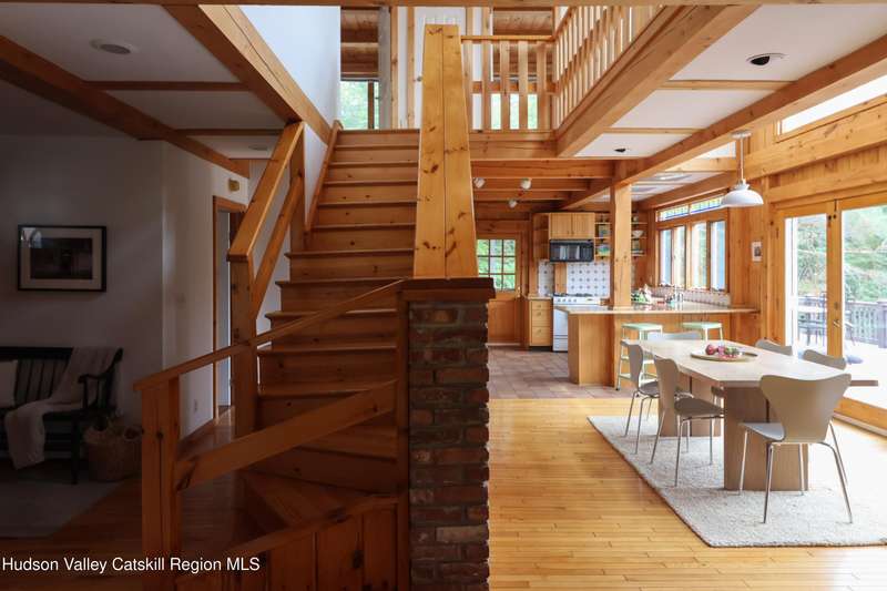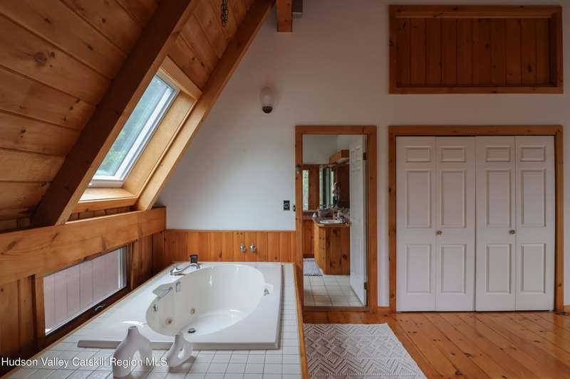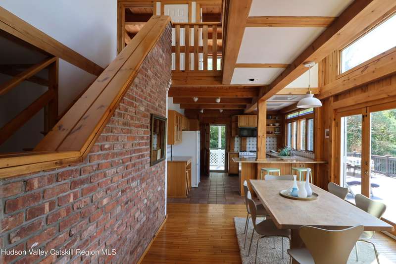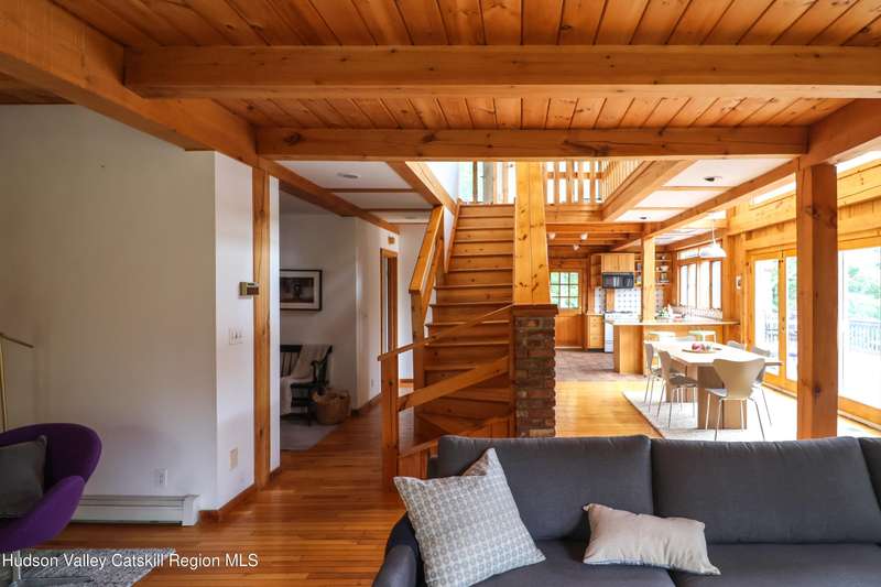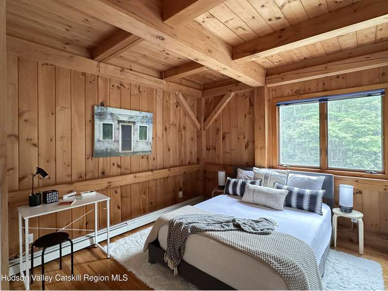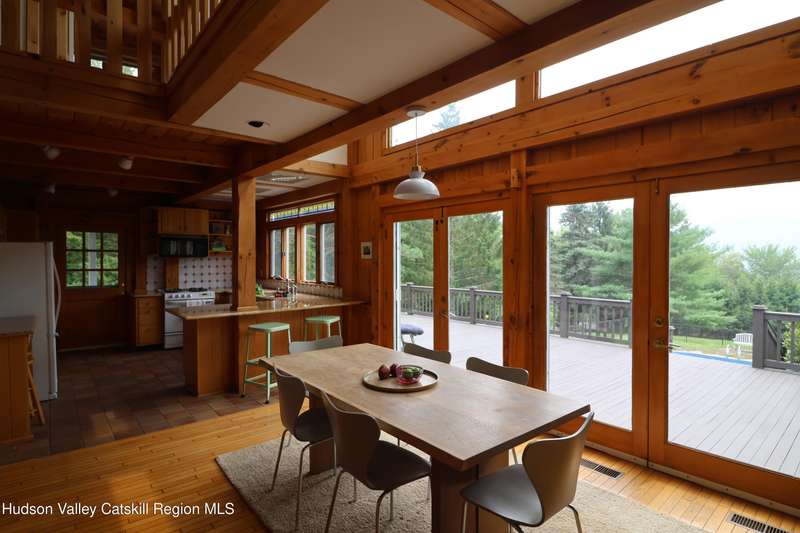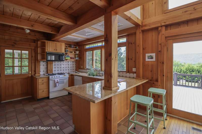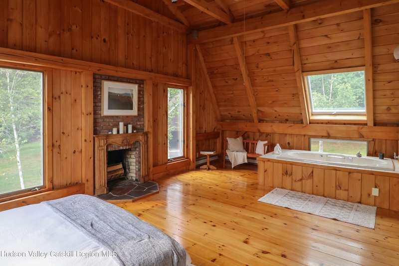 This cozy post and beam home in the Catskills is privately sited off a quiet country road on 14 private and serene acres. Enjoy breathtaking year-round mountain views, your own rolling meadows, woods to explore, and an in-ground swimming pool. This home has expansive decking, a screened-in porch, two fireplaces, and a soaking tub. Located in the heart of the Catskills, surrounded by several charming villages in Ulster and Delaware Counties, this home provides access to world class hiking, fishing, skiing, and fine dining. Inside, there is an inviting open floor plan featuring a spacious living room with a fireplace, an exquisite dining area with two sets of French doors which lead to an expansive deck with striking mountain and pool views. Another set of French doors connects the living room to a delightful screened porch ideal for dining or chatting with friends while gazing at the mountains. The chef's kitchen (with ample counter space) has a door leading to the built-in grill and is ideal for hosting family and friends. There is also a first floor guest room adjacent to a half bath.On the upper level there is a primary bedroom with vaulted ceilings, a wood burning fireplace, an ensuite bathroom, and a spa-like soaking tub. This upstairs area fosters a perfect atmosphere for unwinding after a day on the nearby slopes of Belleayre Ski Center, which is only five minutes away. There are also two additional guest bedrooms, each with lofts and a full bath, which offer ample space for visitors.This property is composed of four parcels spanning two counties, with potential for expansion. Explore the outdoors with your own garden and trails right at your doorstep. Or explore the vibrant villages of Phoenicia and Margaretville (each just 15 minutes away) where one can indulge in local dining, shopping, and outdoor adventures. This home provides access to skiing, fly fishing, hiking, biking, rail trails, and shopping in the nearby villages of Margaretville and Phoenicia, where you can also find spas and fine dining. 30 minutes to Woodstock, Andies, Bovina, Wyndam and Hunter. All this and more only two hours to the GWB.