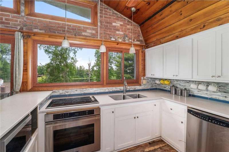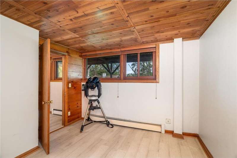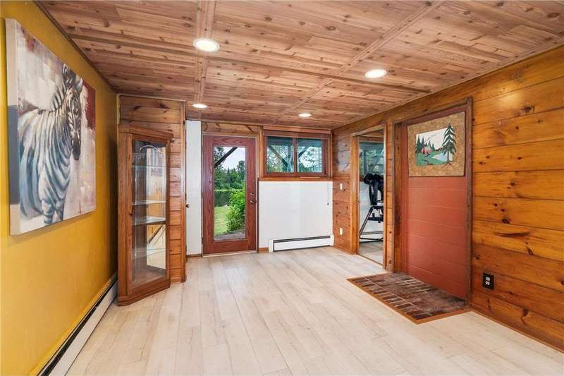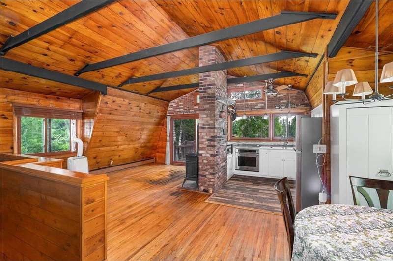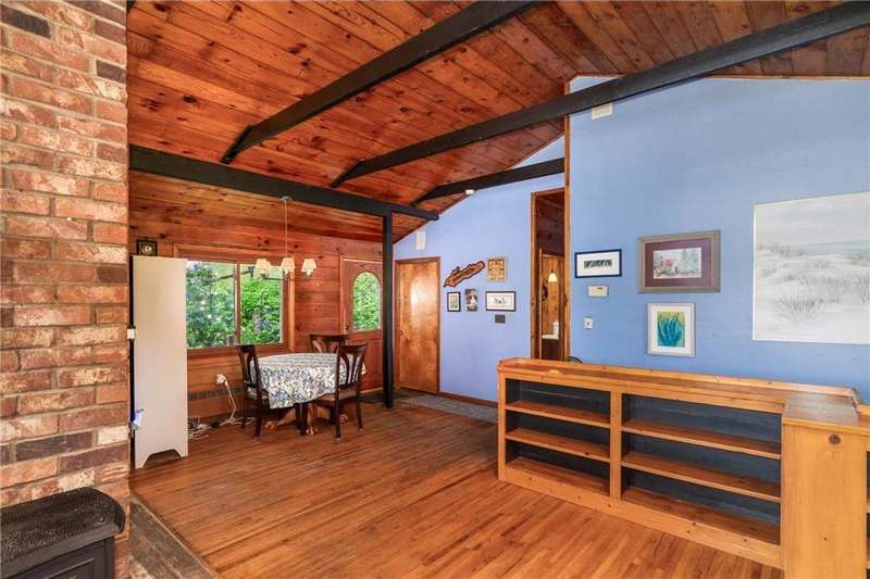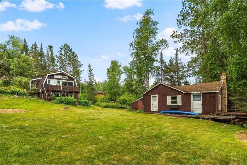 Welcome to your private escape on the serene shores of Bergen Lake, a quiet lake perfect for paddling, fishing, and soaking in nature. This beautifull 3 bedroom, 2 bath walkout cabin offers stunning views and direct access to the water. Inside, enjoy the warmth of natural wood throughout the open concept living area, accented by a striking brick chimney and cozy wood burning stove. The kitchen features modern updates while preserving the home’s rustic charm. Step outside onto the spacious deck and take in the tranquility of your lush, tree lined surroundings. The property also includes a rare gem, an original 1940s cabin complete with sauna, ready for your personal vision. Whether you restore it into a charming guest cottage or transform it into a spacious gathering spot, the possibilities are endless. Additional highlights include: Lifetime warranty windows and doors by My Home Improvement Company Home Roof 3yrs old Scenic, wooded setting with beautiful landscaping and outdoor gathering spaces This is a once in a lifetime opportunity to own a lake home with additional cabin this close to the water on a quiet, private lake. Schedule your private showing today and start making memories at Bergen Lake!