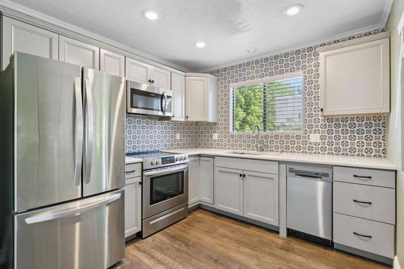 Welcome to 2900 Andre Ln. #23, a delightful 1-bedroom, 1-bath condo featuring 712 sq ft of inviting living space in one of Turlock's most desirable communities. Step inside and admire the exposed beam ceiling, which adds warmth and character, while large windows and vaulted ceilings fill the home with natural light and a breezy, open feel. The upgraded kitchen is a highlight, showcasing quartz countertops, a striking backsplash, stainless steel appliances, and ample built-in cabinetry to keep everything organized. Just off the kitchen, the dining area offers a cozy setting for meals or entertaining guests. The generous bedroom includes a walk-in closet for added storage, and the tastefully remodeled bathroom features a deep soaking tubperfect for relaxing after a long day. Step out onto your private balcony and enjoy your morning coffee or wind down in the evening with a great book. Whether you're entering the market for the first time or starting a new chapter, this move-in-ready condo delivers comfort, style, and convenience. Plus, you're located just one block from California State University, Stanislaus, giving you easy access to campus, walking paths, and nearby shops and restaurants. Don't miss your opportunity to own a piece of Turlock charm!