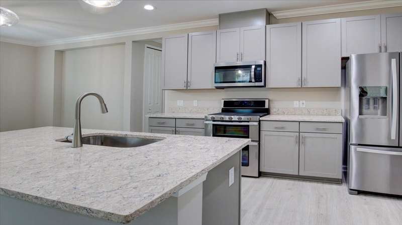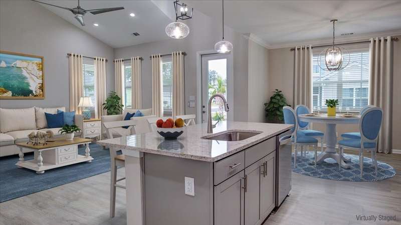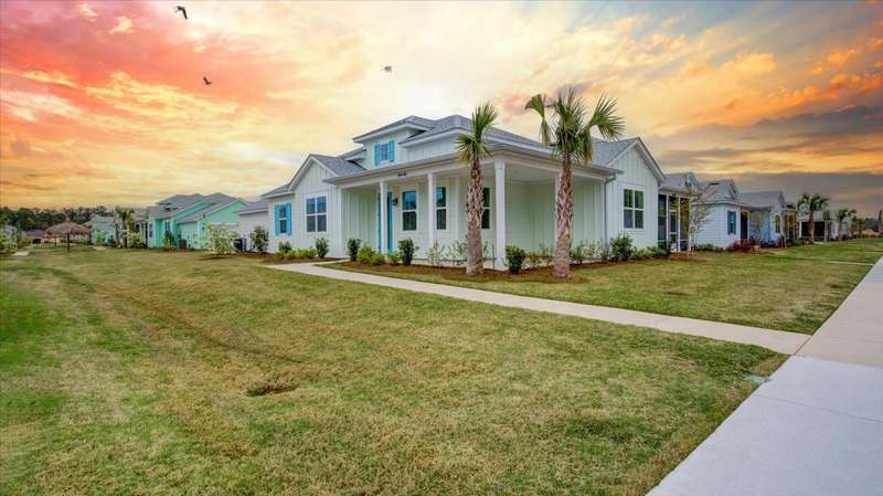 Soothing Neutral tones! Popular 2023 "Dreamsicle Model" Margaritaville cottage on an outside lot w/ green space! Desirable phase 5 location facility!! A short golf cart ride to both the town center and the lake house! A wrap around porch too! Cottage style home w/ many upgrades! Crown molding, natural gas range, refrigerator, Washer and Dryer included- a convenient plus! Elegant 8' doors & 42" soft close cabinets! Upgraded tile & hard surface floors throughout. Quartz countertops! Recessed lights! Exterior painting, landscaping, grass & irrigation included. Wonderful neighbors! Enjoy a vibrant 55+ community w/ a variety of activities & clubs. Experience a "vacation resort lifestyle" everyday.