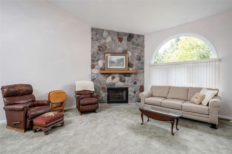 Brighton ranch condo end unit tucked in a quiet corner of Lake Edgewood! This spacious home offers 2 bedrooms, 3 full baths, and a partially finished lower level with optional 3rd bedroom—perfect for guests or out-of-state family. The open-concept kitchen flows into a vaulted great room with a beautiful stone fireplace. Enjoy morning coffee in the four season room just off the primary suite, or relax in your private fenced courtyard. Additional features include a two-car attached garage and convenient first-floor laundry and new furnace (2024). Just minutes to downtown Brighton, shopping, dining, and expressway access!