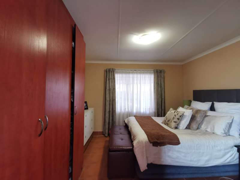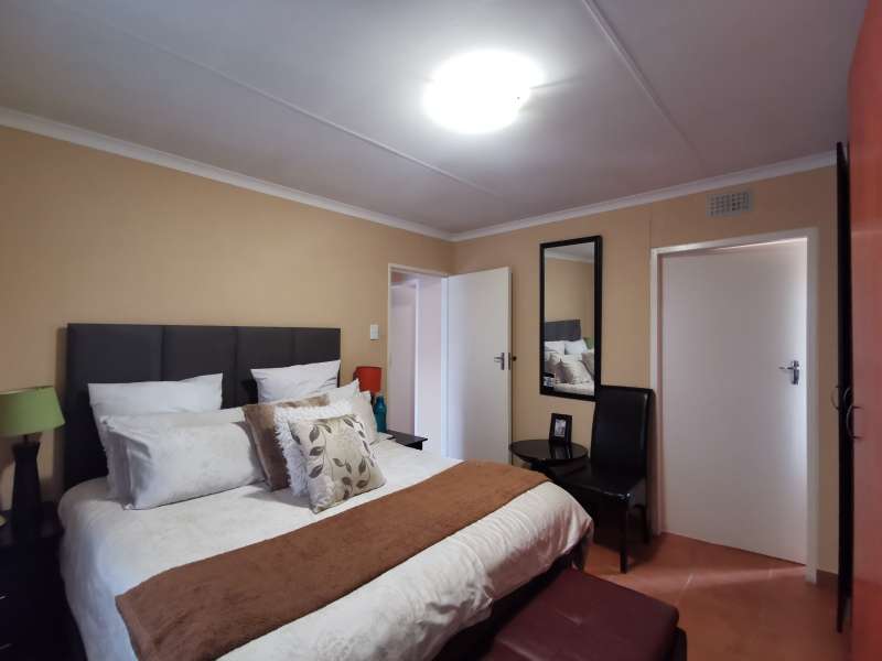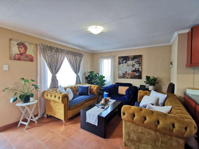 This Lifestyle complex with 24 hour guarded security offers this home featuring 3 bedrooms with built in cupboards, 2 bathrooms – main with en-suite (shower, toilet, and basin and 2nd bath, toilet, and basin), an open plan kitchen leading into a sizeable lounge/dining area. Practise your chef skills in the kitchen with ample built-in cupboards and space for other appliances. The kitchen has an electric stove, under counter oven and a breakfast nook. This property offers a solar geyser, fibre Wi-Fi ready, prepaid electricity meter, lockable entrance gate, a carport and a paved driveway for more parking space. This lifestyle complex boasts a private Royal school, crèche, and playing grounds for children. It is well located close to various amenities, public transport, and easy access to the freeway to Johannesburg. Don't delay, call me today to set up a viewing appointment!