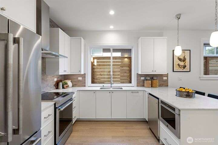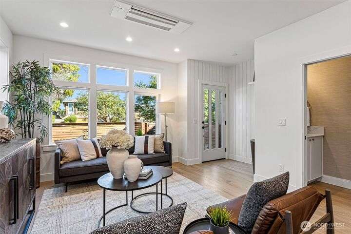 Discover modern living in this light-filled new construction home in Ballard by Roland Development! Sleek finishes and smart design define the open main level, complete with a welcoming entrance. Upstairs, two versatile bedrooms share a full bath, while the private top-floor primary suite creates a true retreat. Step outside to a quiet fenced yard with turf—your personal sanctuary for entertaining or unwinding with ease. With assigned parking with EV charging, nearby transit, and effortless access to Ballard’s lively scene—from breweries and the farmers market to Shilshole Bay—you’ll enjoy the perfect blend of style, comfort, and convenience!
