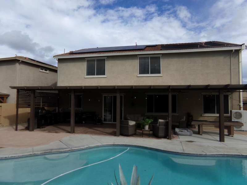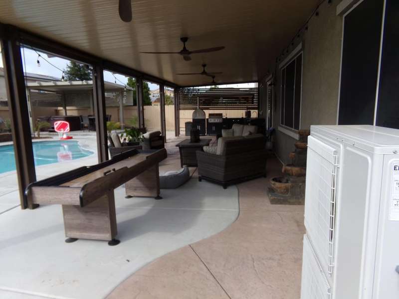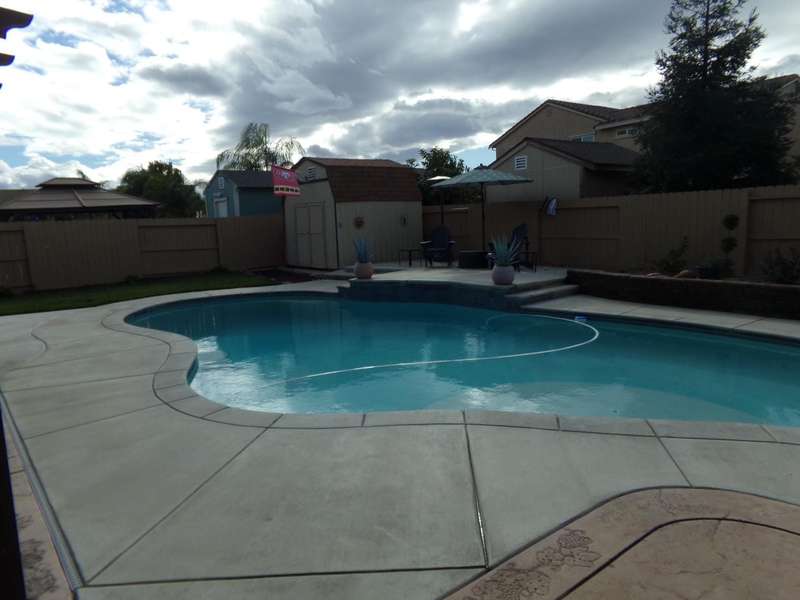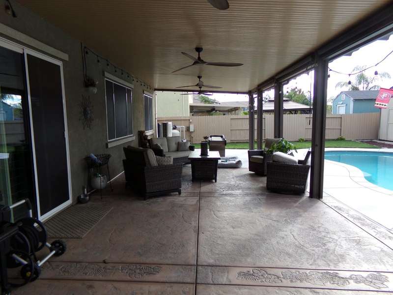 Super clean & elegantly designed 3,439 SqFt home. , 5 bedrooms and 4 full bath & 1 half bath with small office/study. Kitchen features granite counter tops with tile back splash, double oven for the holiday parties, larger center island, & large sized pantry with coffee station. Separate family & living room Down stairs. up stairs has an additional family/ game area. Outside is an oasis with full canopy cover in the back of the home. Pizza oven, barbeque, 2 top burner stove, cabinet space, sink(water and drain not hooked in). Custom concrete design, raised concrete with second cover with hot tub & seating area. Has second raised concrete area behind the pool with seating area. Possible boat/RV parking. Appx 10' wide with custom gate, paid off solar, but lease covers warranty for unit & must sign up to take over lease for solar contract. Solar for pool as well. Seller prefers a 60 day escrow.
