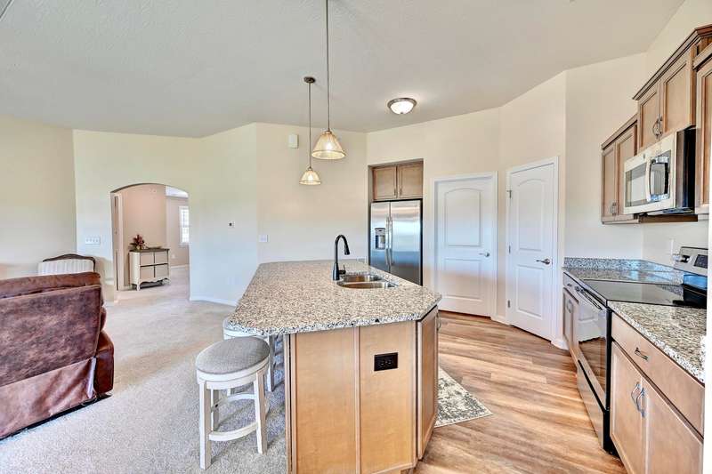 Hayward model with attached garage - Like new! Covered porch overlooks woods/green space.