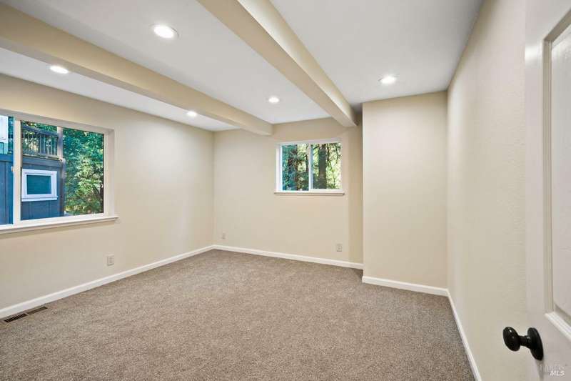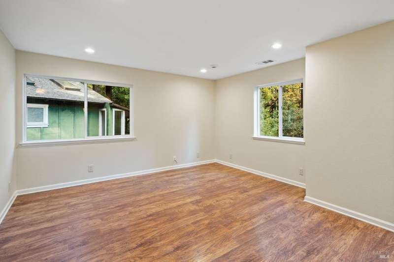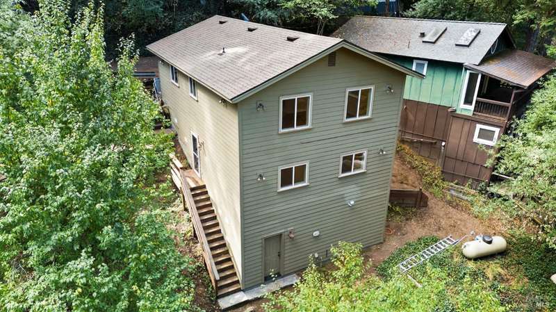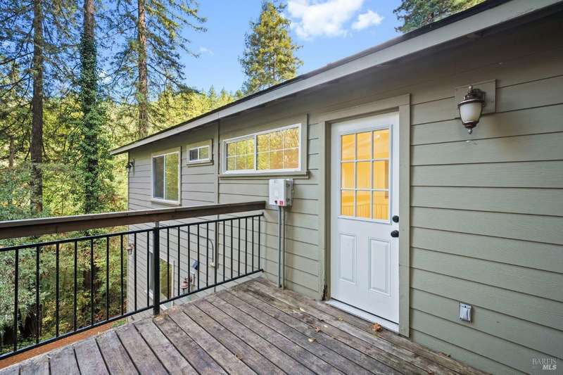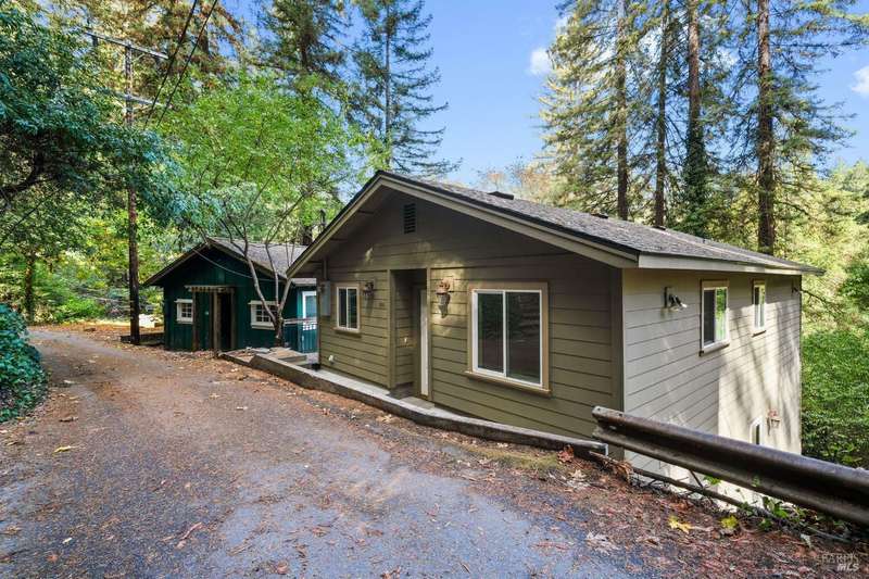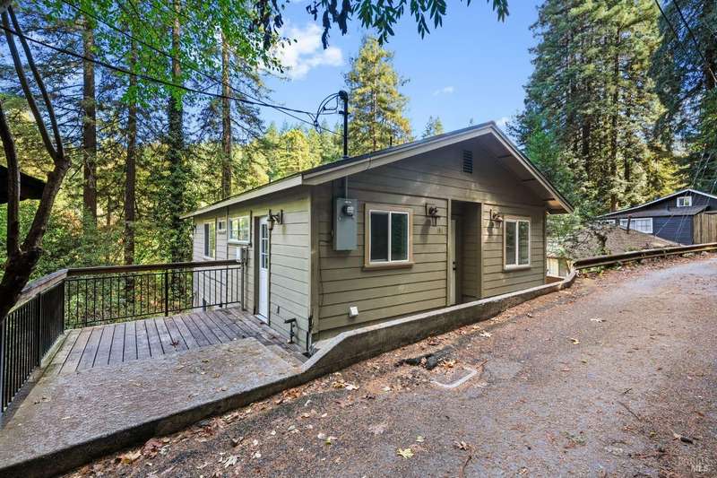 Just minutes from downtown Occidental, this 2-bedroom, 2-bathroom home offers a peaceful retreat in the heart of Camp Meeker. In addition to the bedrooms, it features another generously sized bonus room, allowing for versatile uses such as a home office, or creative studio, gym or more. Step out onto the deck to enjoy the soothing sounds of nature and stunning views of the surrounding redwoods. The property also includes a convenient in-home laundry room, a new roof, and ample storage space. Remodeled in 2011, the spacious living area beautifully blends modern comfort with the serene beauty of the woodland setting. Buyer to verify actual bedroom amount.