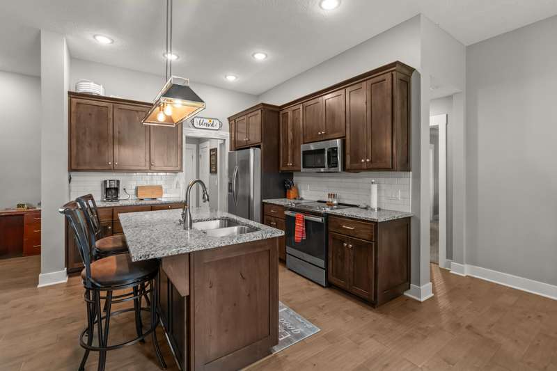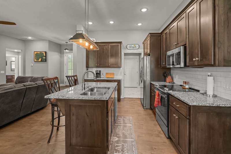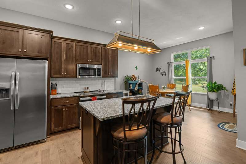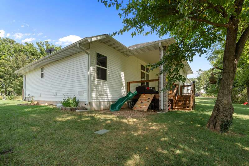 This stunning 3 bedroom, 2 bath home sits on a corner lot and features a spacious 3-car garage. Inside, you'll love the open floor plan, cozy gas fireplace, custom cabinetry, and granite countertops that bring style and function together.Step outside and discover the fun extras that make this home truly one-of-a-kind--a climbing wall and slide off the back porch, plus a professionally installed invisible fence for your pets.With modern finishes, plenty of space, and a prime location in Republic schools, this home is ready for you. Don't wait--schedule your showing today!