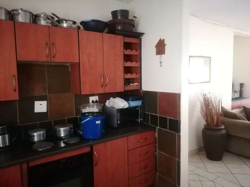 This is a good condition 3 bedroom apartment in Rustenburg oos einde. It has a kitchen, lounge area, dining area and 2 bathrooms. Outside it has a back yard and a carport. And its available now for sale.
