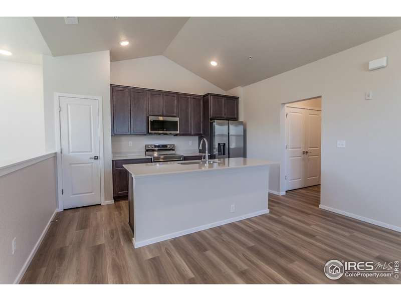 Lock & leave! Move-in ready and designed for low-maintenance living, this brand-new, second-level condo offers both comfort and convenience. Enjoy the privacy of your own entry directly from the attached one-car garage. Inside, the kitchen features sleek stainless steel appliances, including a dishwasher, fridge, microwave, and range, paired with smoke-stained maple cabinetry and stylish quartz countertops throughout. The home boasts vinyl plank flooring that flows seamlessly through the entry, kitchen, bathrooms, laundry room, living room, and even the stair treads and risers. With two cozy bedrooms, this space is ideal for easy living. Plus, a washer and dryer are included for added convenience. Stay comfortable year-round with central A/C. Finishing touches like the white 2-inch faux wood blinds provide a clean, modern look, all while keeping maintenance to a minimum. Take advantage of the various parks, pickle ball courts, miles of trails, and farm to table lifestyle with access to orchards, cornfields, & pumpkin patches, access to lakes in Water Valley, golf cart friendly roadways & paths, community fire pits & bbq grills. For an additional fee you can enjoy the community water park and indoor gym. HOA includes exterior building maintenance, exterior insurance, grounds/landscaping maintenance, snow removal for sidewalks/walkways/private streets, Xfinity 5G internet, water, sewer, trash.