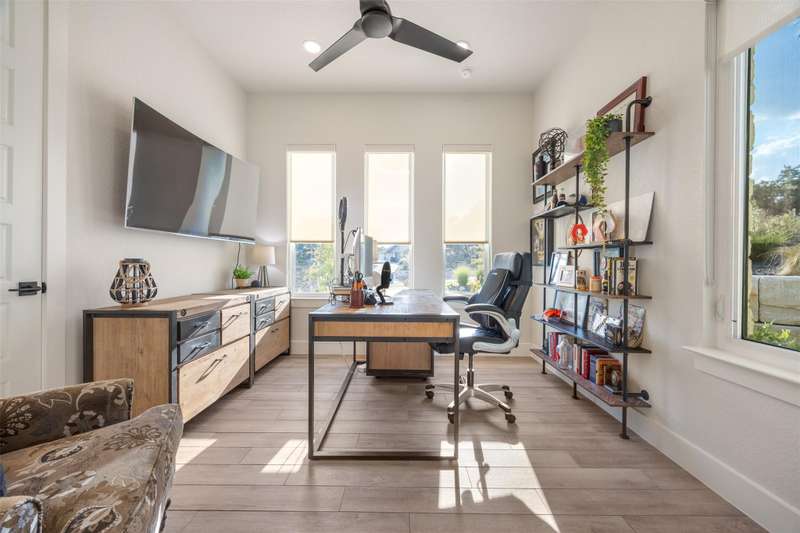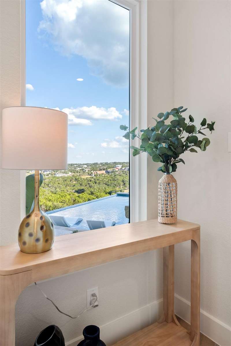 Outside is an entertainer's paradise, complete with a sparkling custom pool and an expansive outdoor living space. Whether you're hosting a lively gathering or enjoying a quiet evening under the stars, the outdoor area offers ample room for lounging, dining, and taking in the miles of epic hill country views.