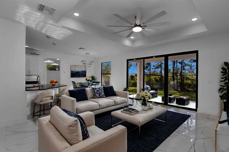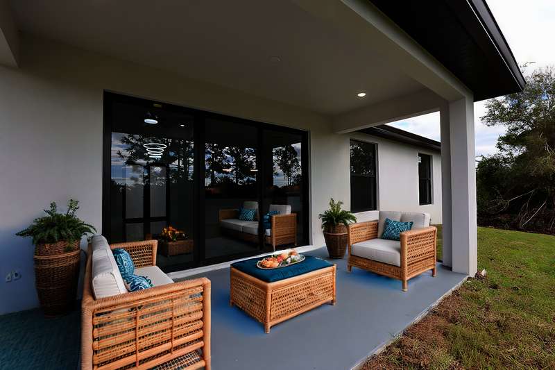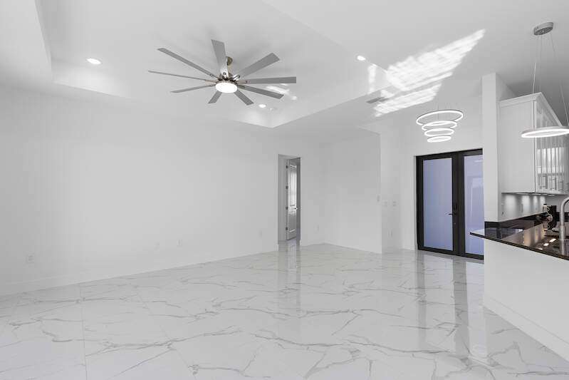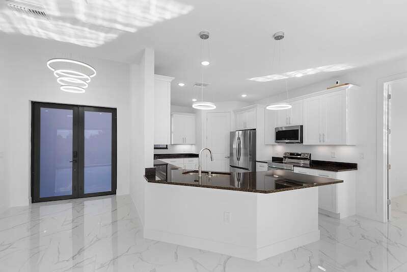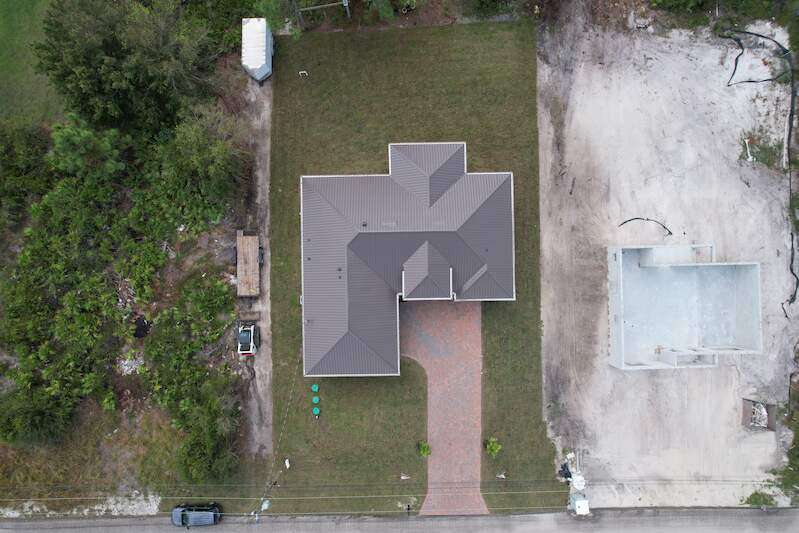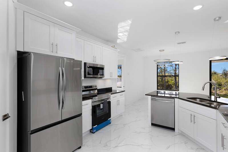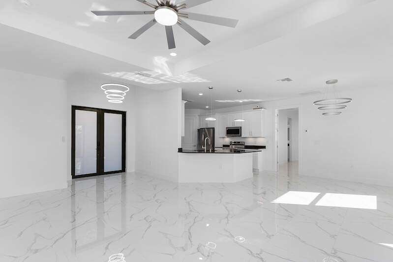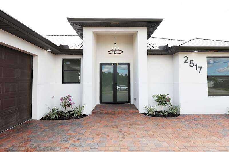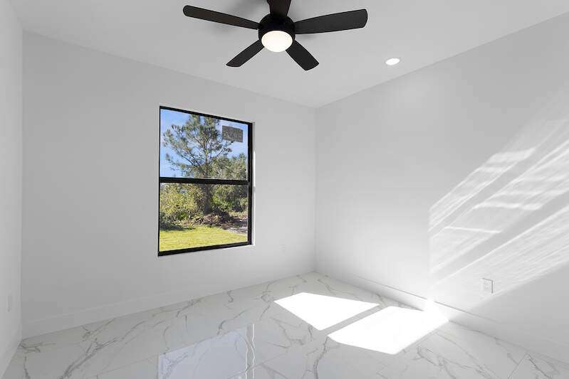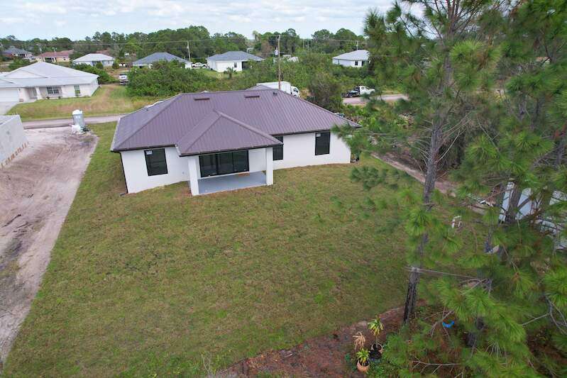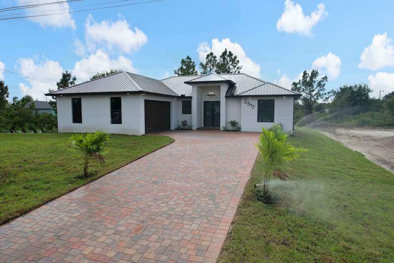 Gorgeous new construction home! The builder spared no expense, starting with a stunning METAL ROOF -a $25,000 upgrade over standard shingles -offering exceptional durability, longevity, and energy efficiency. You'll also enjoy the peace of mind provided by HIGH-IMPACT WINDOWS AND DOORS, ensuring top-tier storm protection and added energy savings. Inside, the spacious kitchen is a chef's dream, featuring upgraded Samsung stainless steel appliances, granite countertops, abundant cabinetry including a lazy Susan, and a large layout perfect for cooking and entertaining. The home's modern elegance continues with 9'4" ceilings, oversized tile flooring in every room, and sleek contemporary lighting that creates a bright and seamless flow throughout. The garage is finished with epoxy floors, and the exterior offers a covered patio, full gutter system, irrigation/sprinklers, and a paver driveway. Best of all, this home is located in an excellent area just minutes from Lee Blvd, Walmart, Publix, and Fort Myers-and it's not in a flood zone. $5,000 BUYER BONUS - Use Toward Closing Costs! Don't miss your opportunity to own this exceptional, move-in ready home!